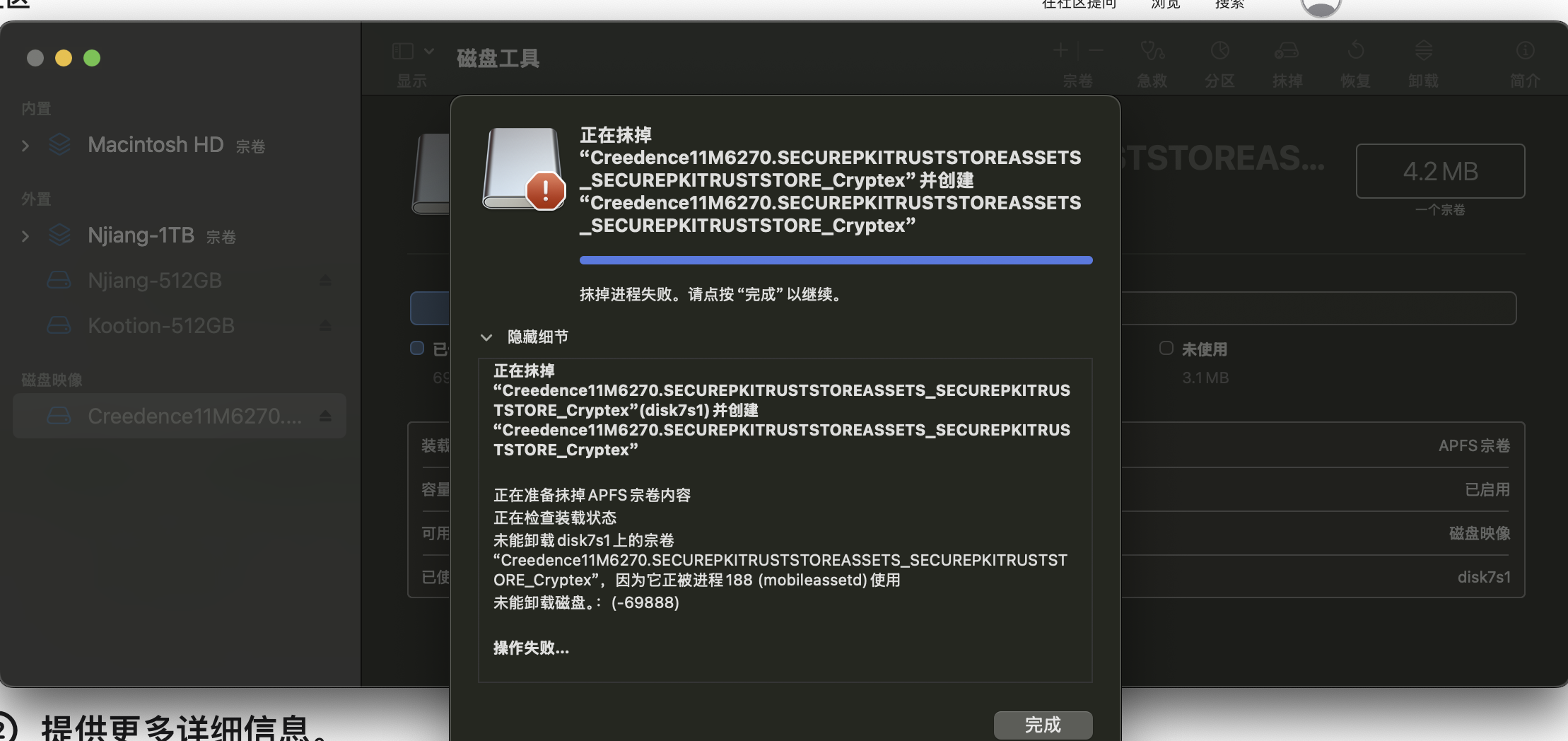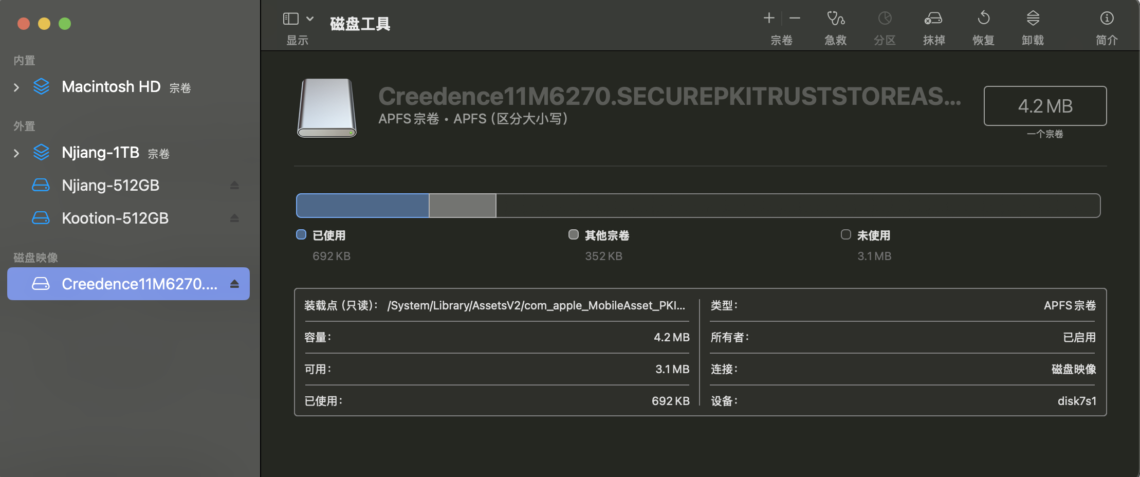 Mac 磁盘工具里检查到一个“Creedence Cryptex”的磁盘映像,无法删除