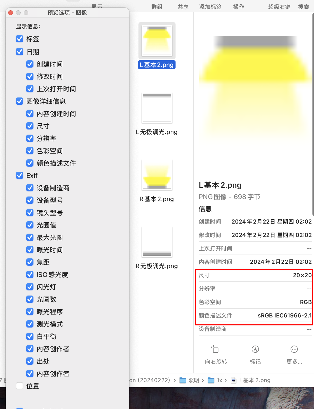 3、photoshop2024导出的png图片尺寸、分辨率、色彩空间等信息丢失。