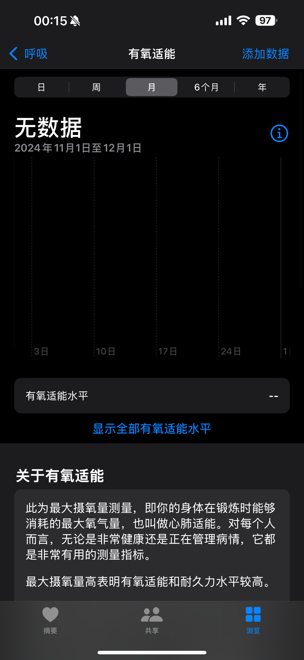 连续带着iwatch s10跑步两天了(只带了表),回家后连接手机各种数据都有更新到手机健康app,但是有氧适能始终没数据,这是怎么回事啊