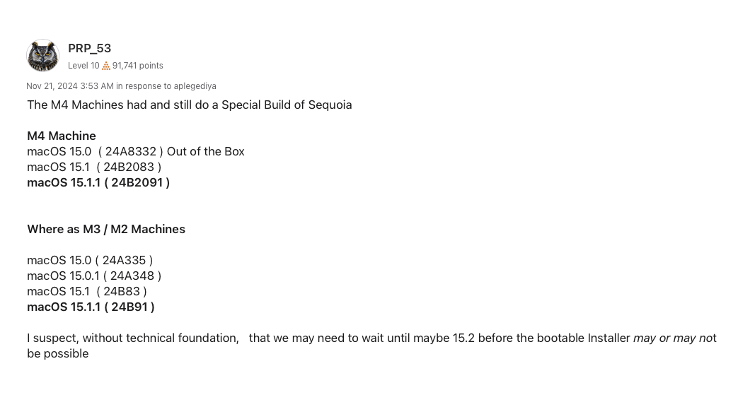 求助用Macmini m4和MacBook pro m4创建创建可引导的 macOS 安装器都是报错,系统15.0和15.1都不行
