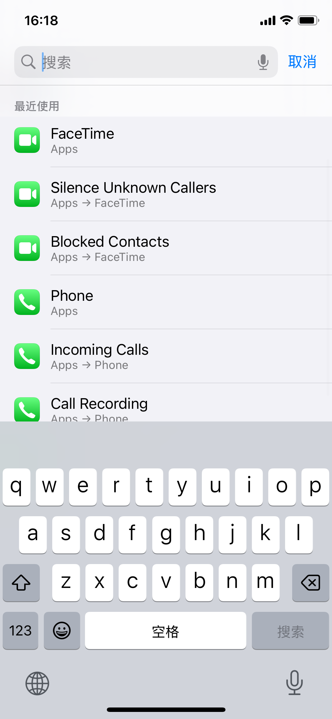 在设置中,点开顶部的搜索,最近的搜索建议选项并没有汉化完成,刷机后仍然无法解决