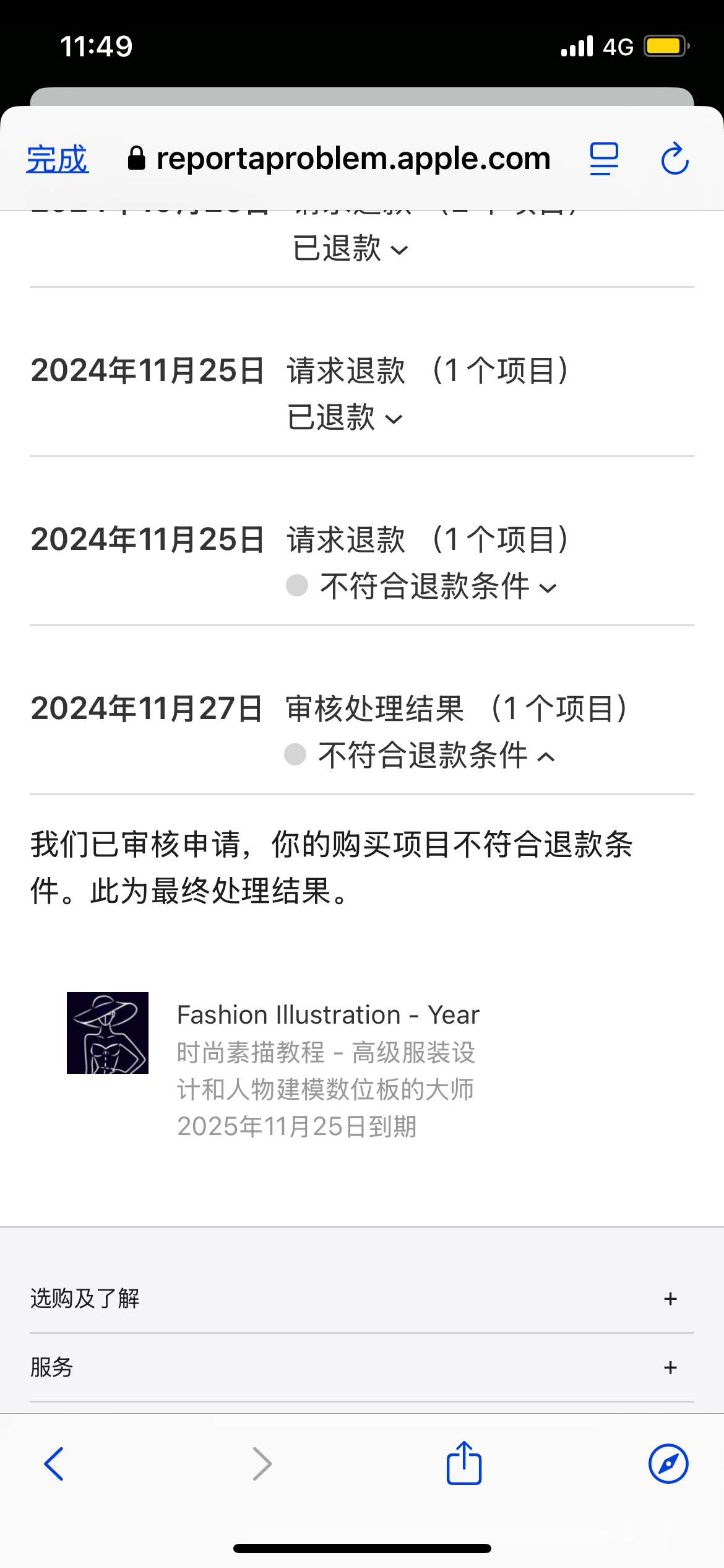 App Store 购买未提供无理由退款承诺。另外可以看到你此前已发起数笔退款并得到了退款。频繁发起退款会影响后续退款申请的审核。