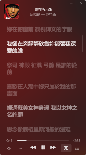 apple music电脑版在桌面上只能显示这两种情况,有歌词的这个太大了,小的这个又没有歌词,有没有一种像qq音乐一样那种的桌面歌词啊?