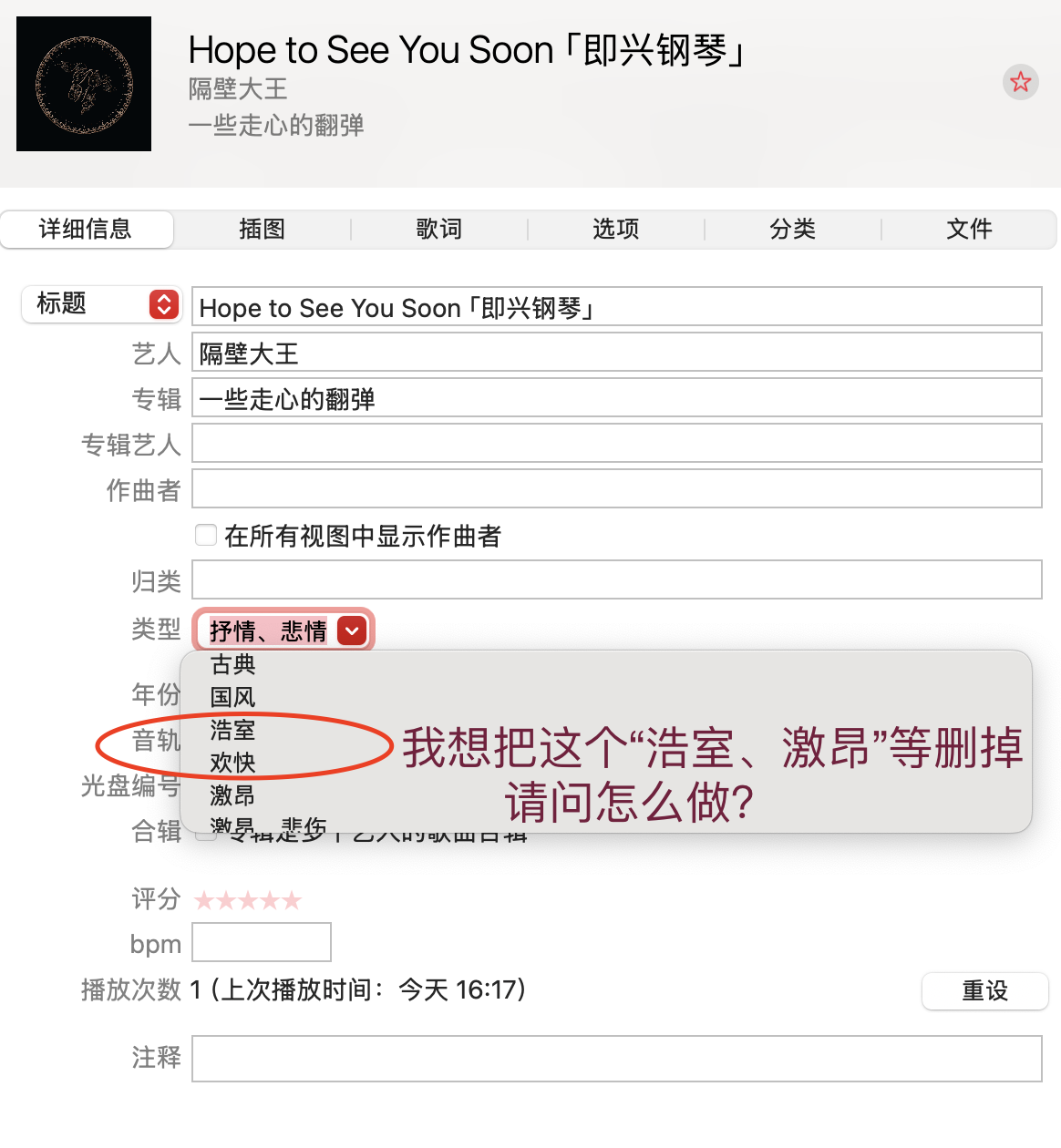 Mac 音乐中 类型,有很多没有用的选项,我想把这些都删掉!请问怎么操作?