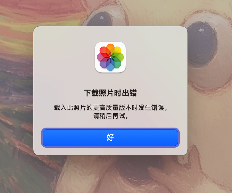 Mac上使用"修图”功能会出现“载入此照片的更高质量版本时发生错误”