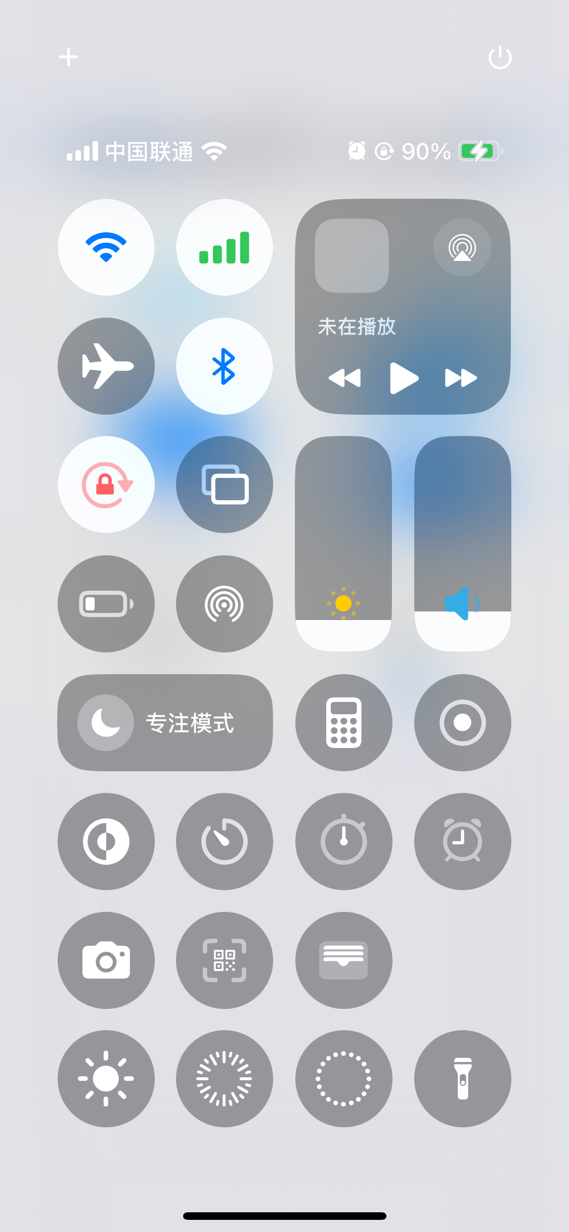 在使用了“更大字体”功能以后,控制中心的图标反而不如“默认”功能时的图标大。可以看到当控制中心有很大字体时设备功能图标反而更小。这与其他界面时字体与图标的大小变化方式不一致