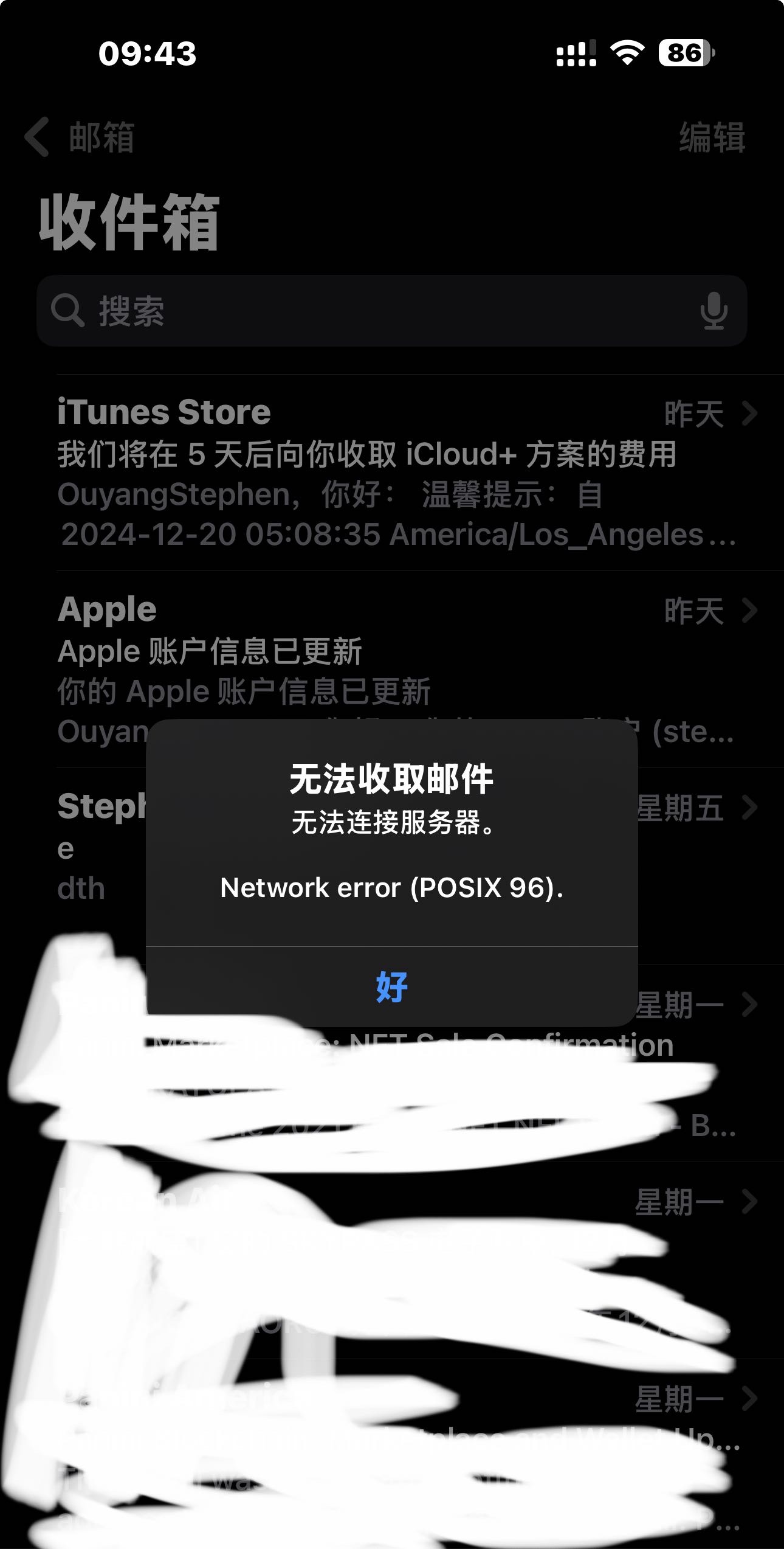 icloud邮箱只能收到苹果自己的email 其他的都收不到 代码POSIX96