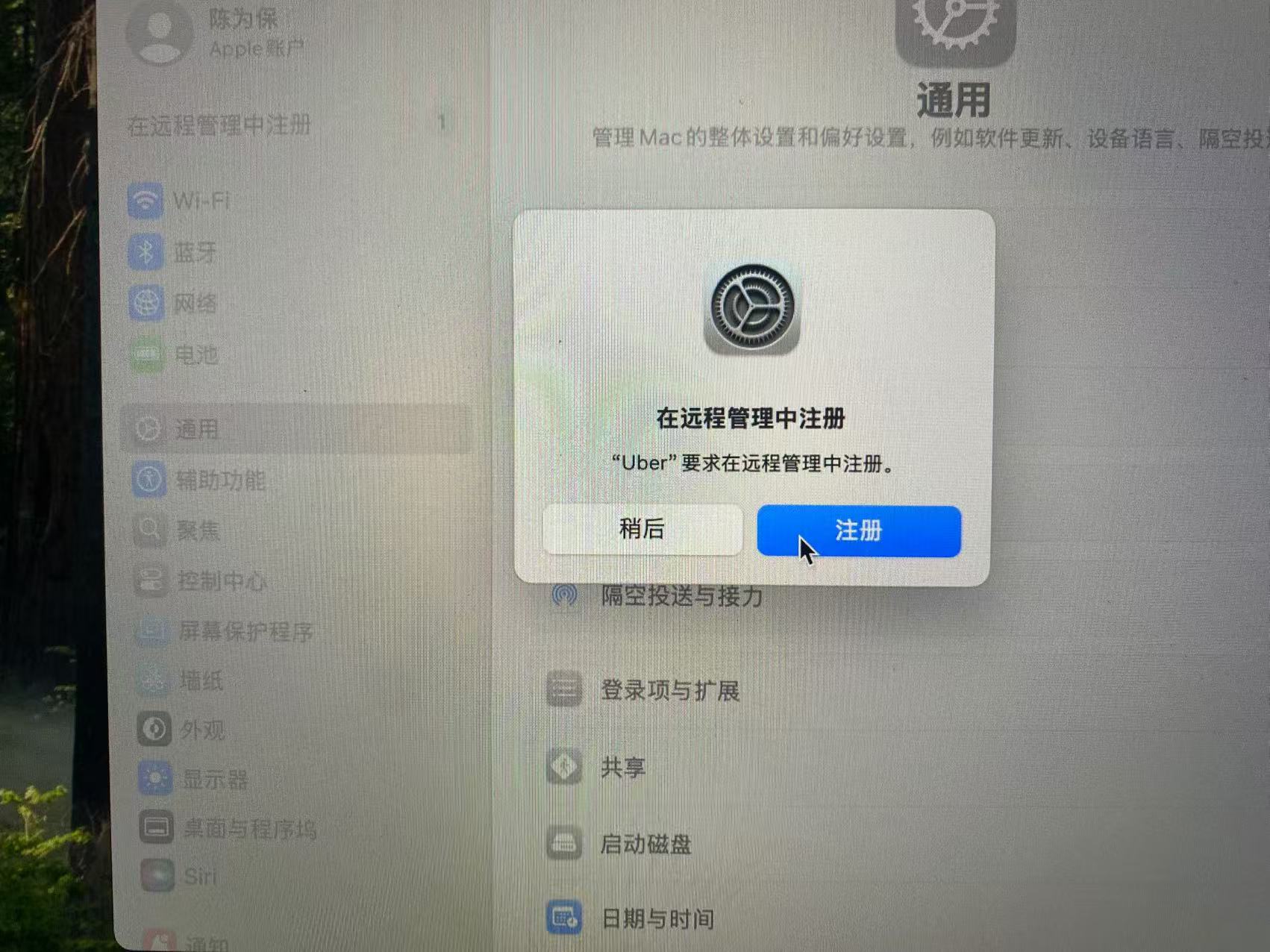 MAC系统15.2跳出在远程管理中注册,怎么抹除这个