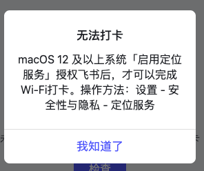 MacOS的飞书在系统设置隐私与安全的定位服务中没有可选项