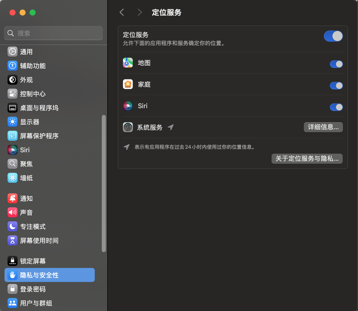 我的是外置系统盘有一样的问题,mac mini 本身的系统更新至15.2没有这个问题。外置硬盘的系统版本也是mac OS 15.2,你们遇到的定位服务开启后不适用的内置应用也是外置系统盘吗?