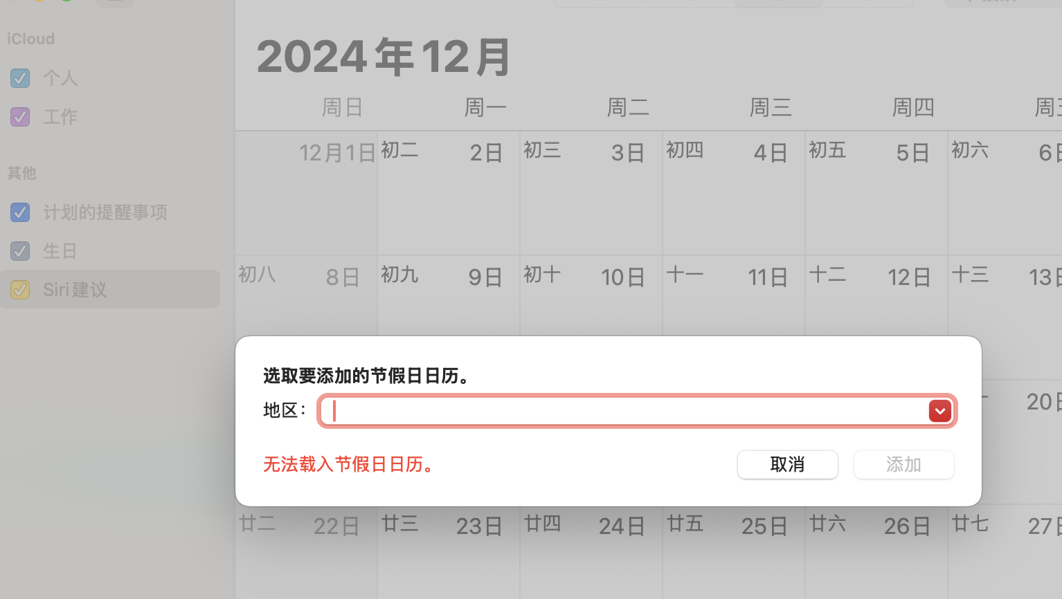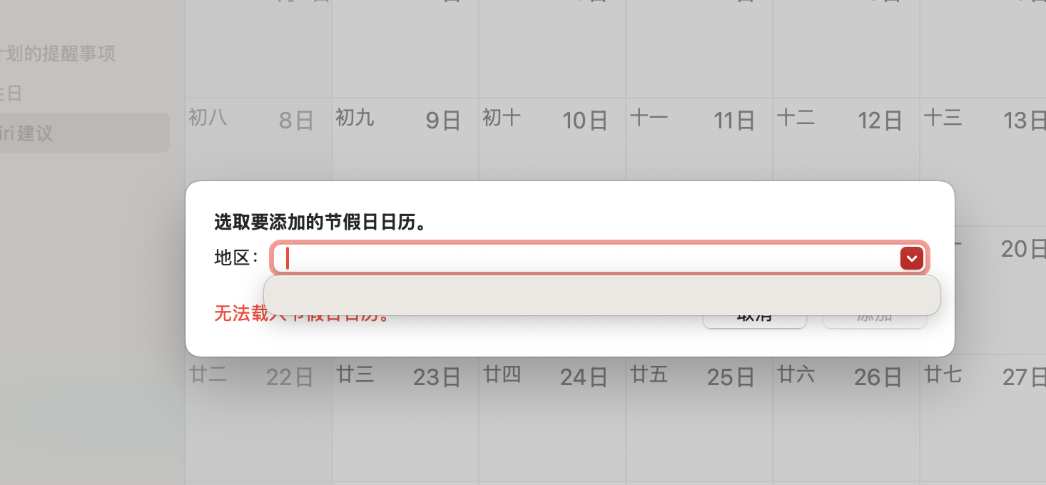 已经试过了结束进程,重新打开日历,也无法再次添加