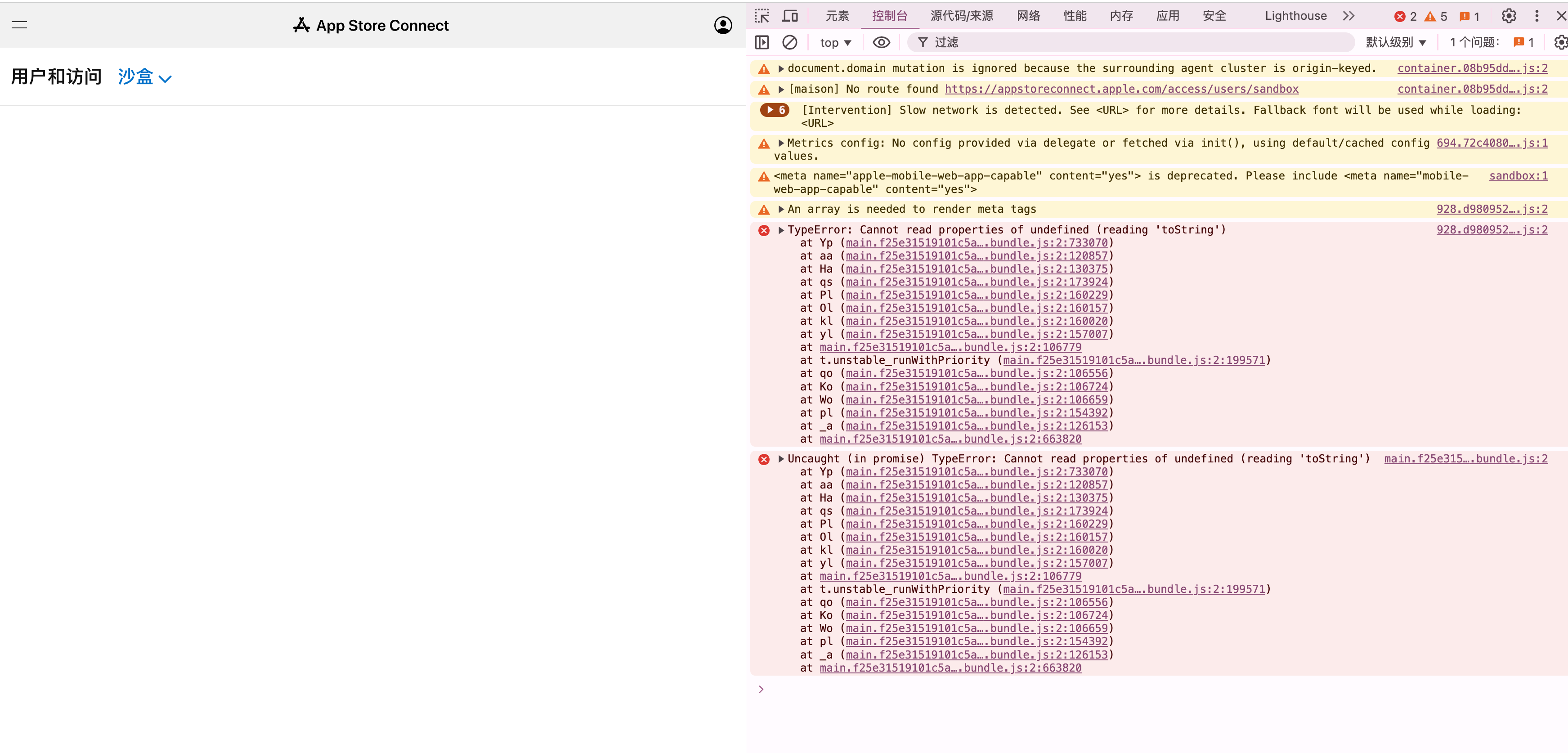 之前添加过一个沙箱用户,密码忘记,所以就删掉了,删掉后,页面如附件,不显示添加沙箱用户页面,控制台报错ye'm