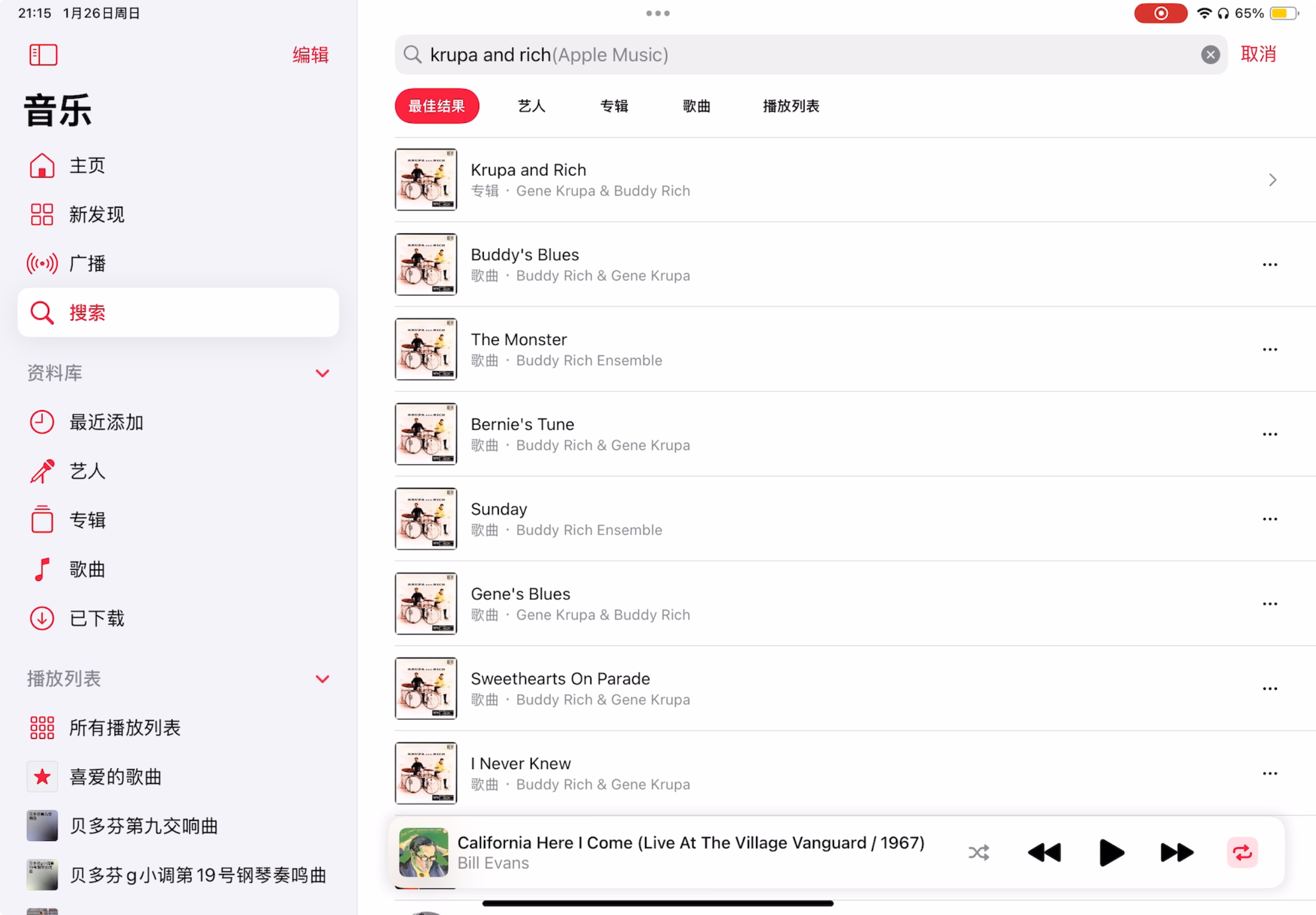 Apple Music 搜索界面进入后,无法点击和播放音乐