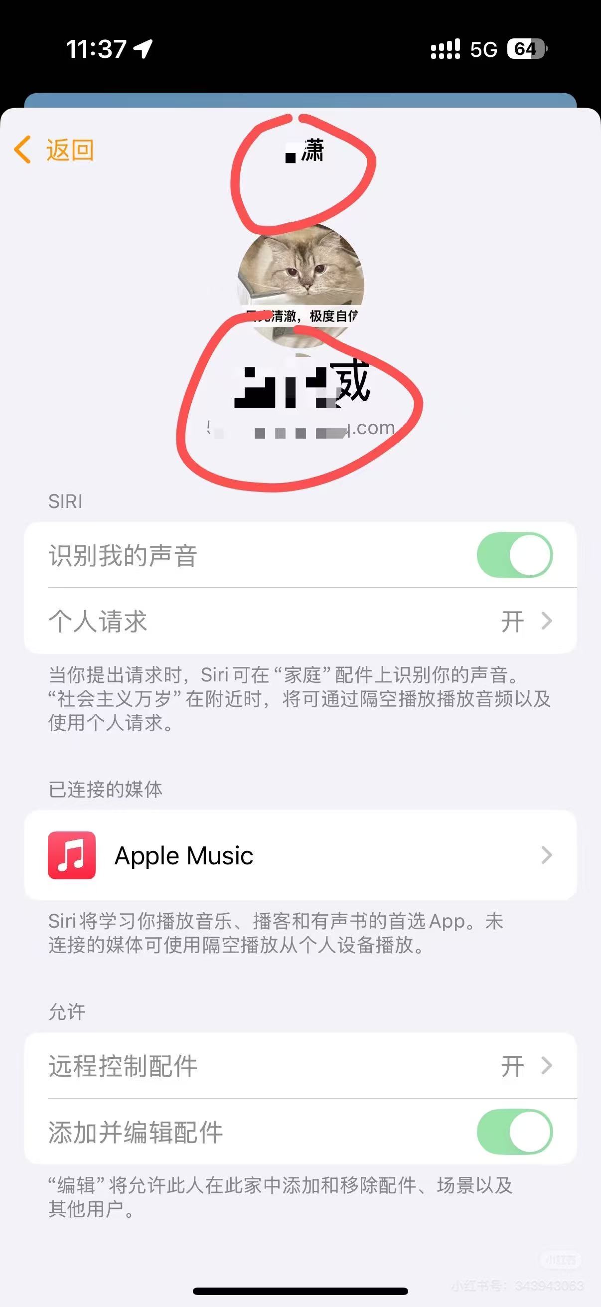 iPhone 家庭设置中用户的名字和实际不符