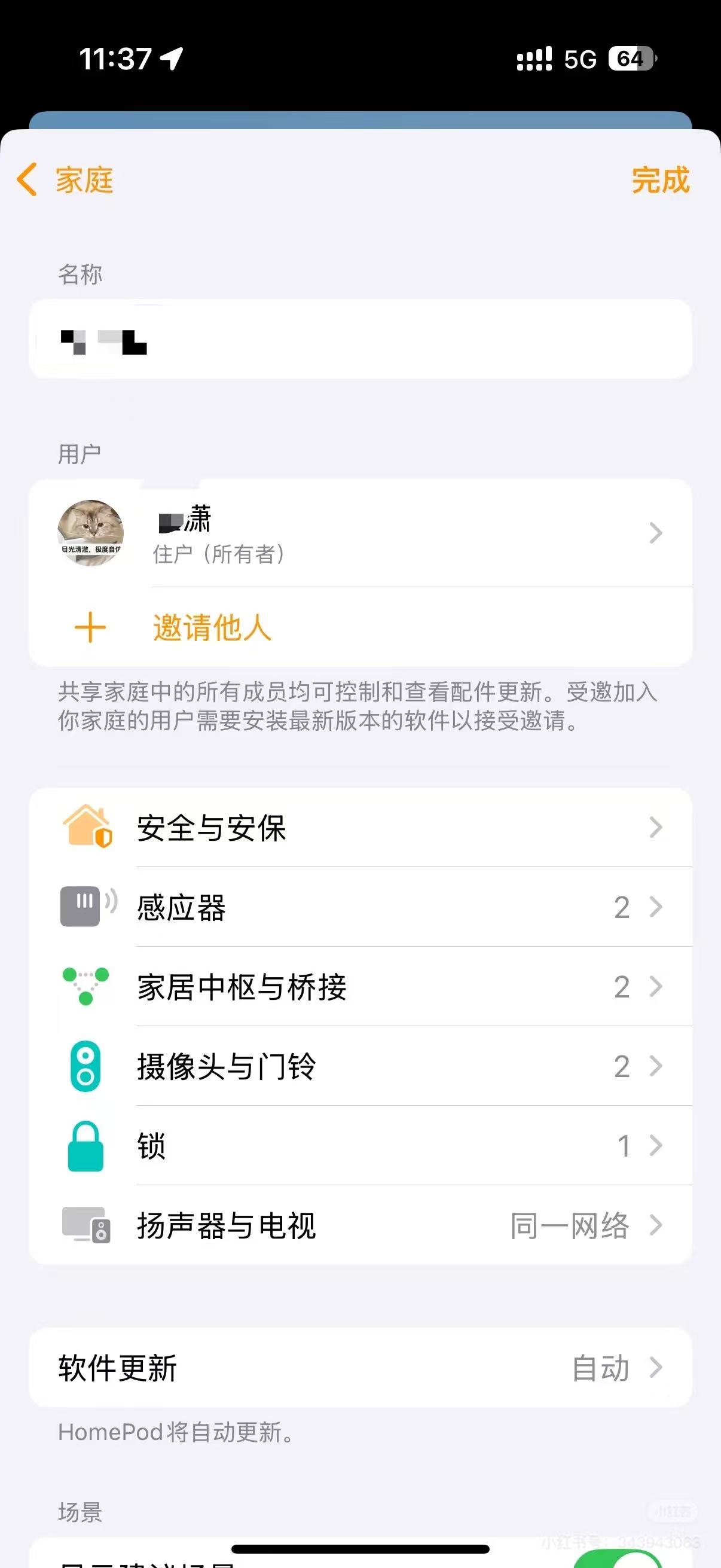家庭内仅有我一个用户(所有者),但显示的却不是我的名字,且无法修改。点进去后却显示了正确的名字,但上方栏依然不对。