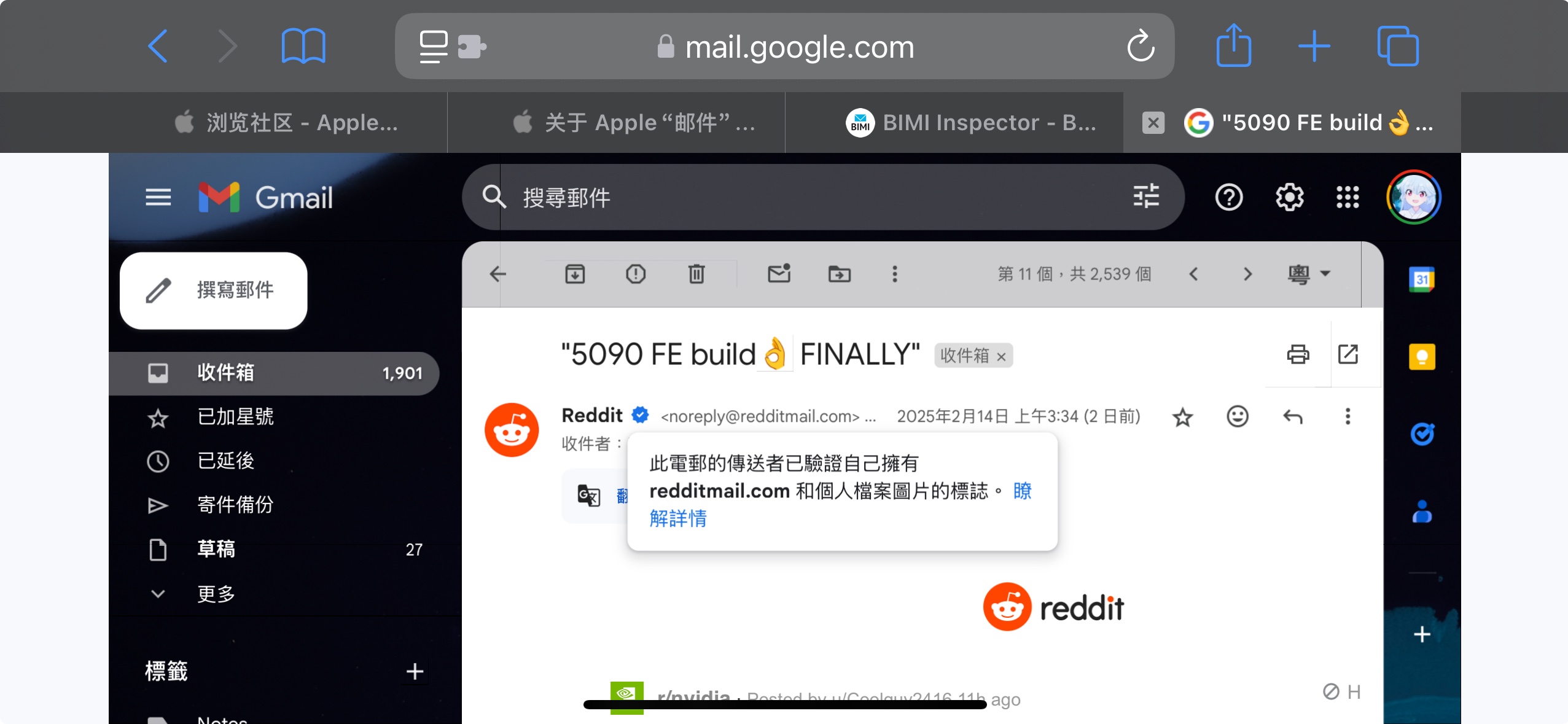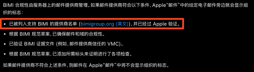 參考关于 Apple“邮件”中的 BIMI 支持 - 官方 Apple 支持 (中国)中