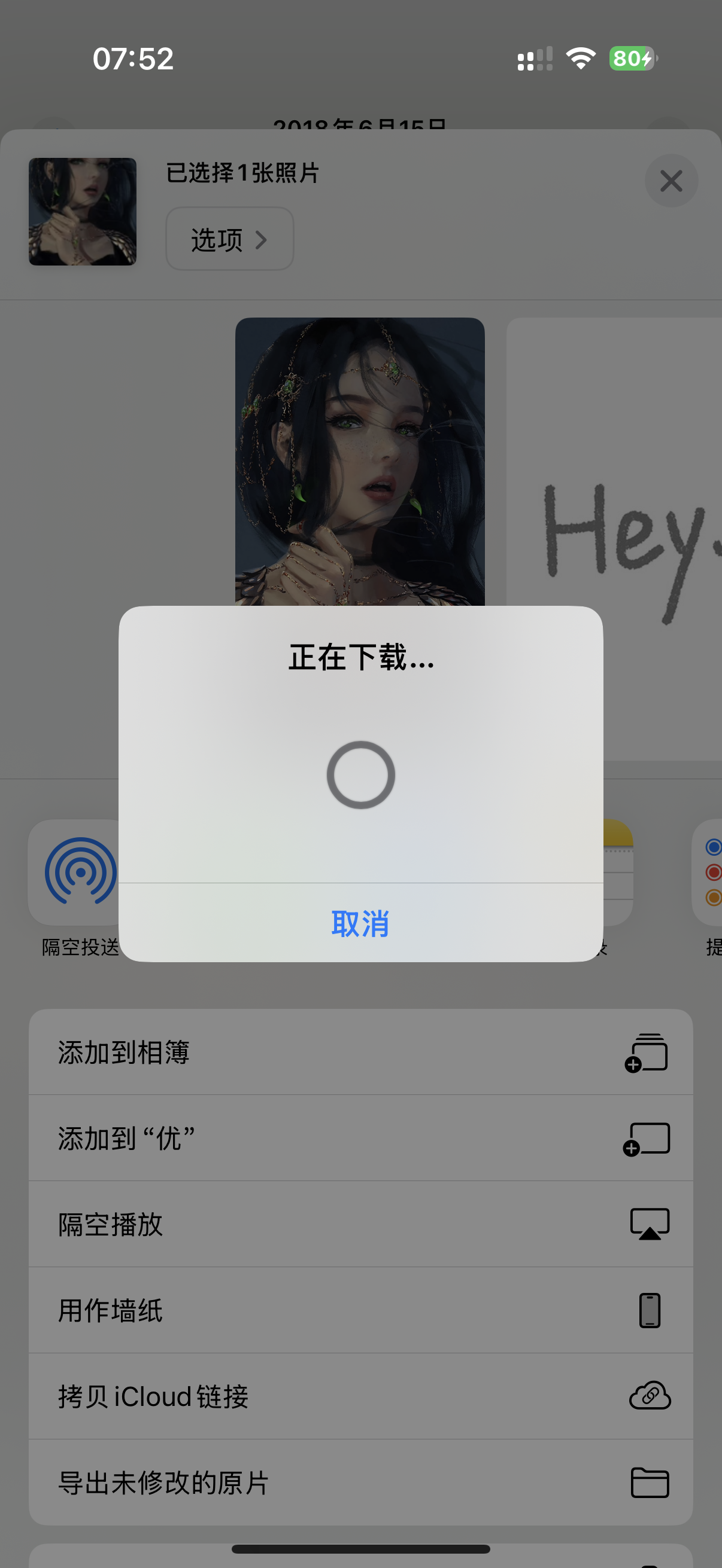 因为是上传到 iCloud 里的 照片设置壁纸一直显示正在下载
