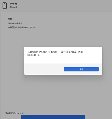按照您的方法又是出现以下的提示,连在电脑上的手机就出现一个苹果标志和一半的进度条,电脑上的杀毒软件也是关闭的,不知哪个环节出问题了。拔掉数据线后就算强制关机,一连接就出现数据线和ITUNES的标志,死循环了。