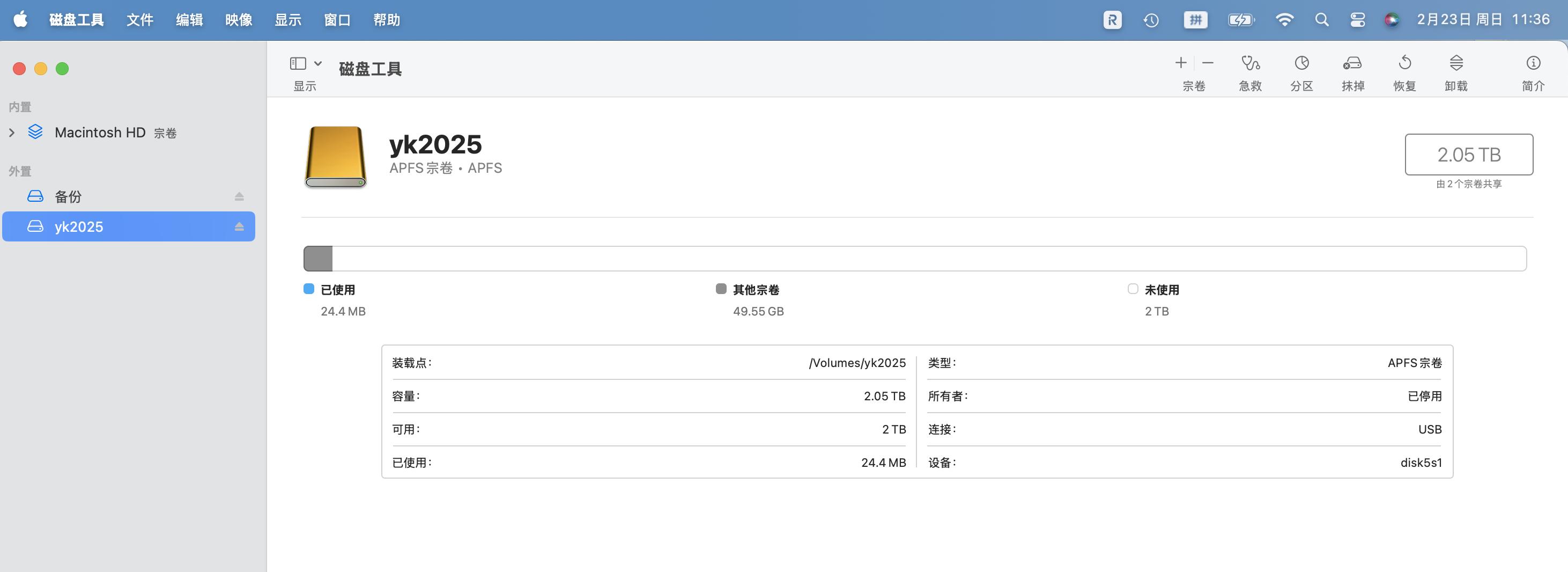 外置SSD,其在iphone15pro (ios18.3.1)上录制ProRes HDR视频使用时,提示“不支持的文件系统 外置储存设备必须格式化为 exFAT 才能支持外部录制” ,该SSD大小为2T,格式为APFS,启用共享宗卷,其中一个用于文件存储,使用iPhone“文件”app,以及mac的访达可以正常使用,一个共享宗卷用于时间机器。