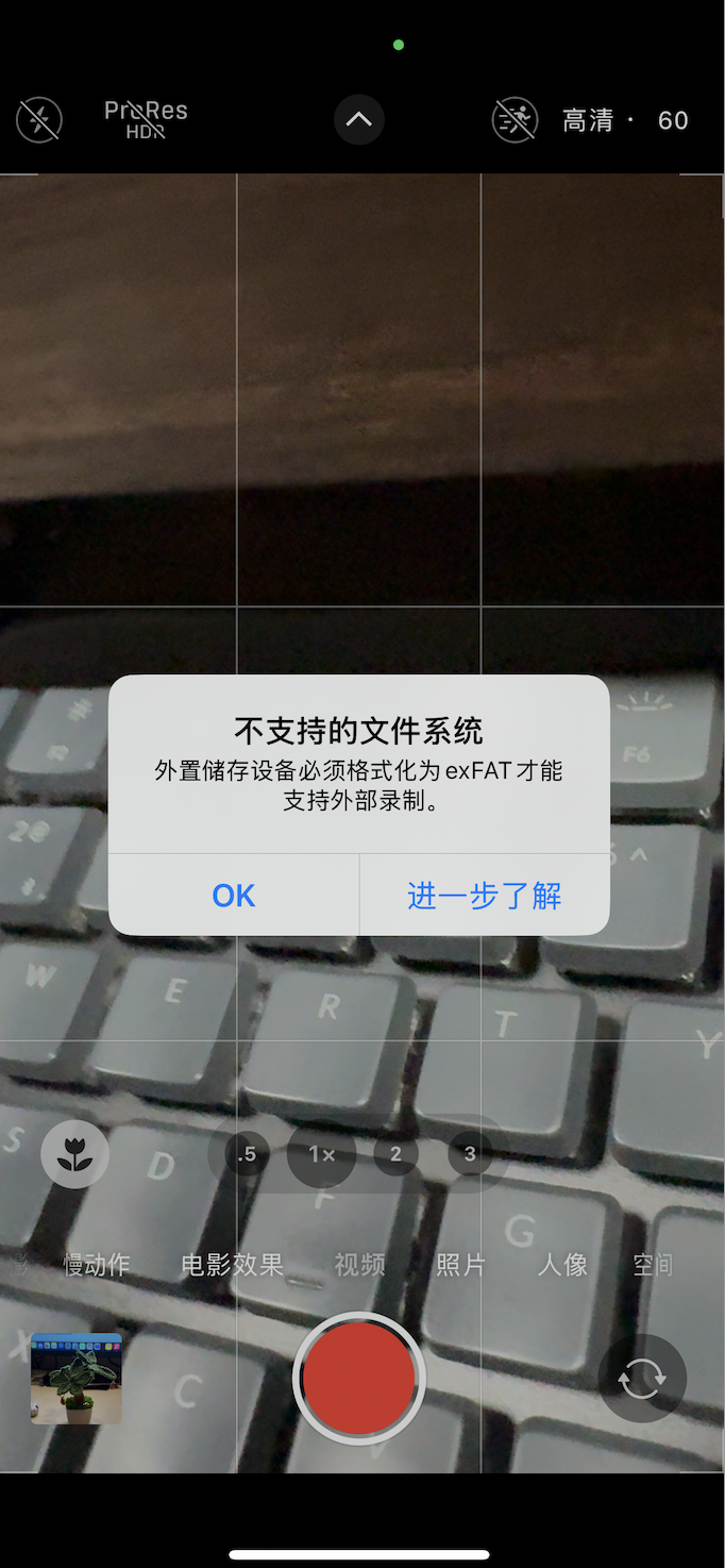 iPhone无法使用APFS格式的外置储存设备录制ProRes HDR视频