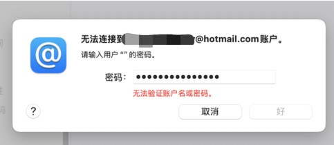 Mac邮件用的hotmail,但一直无法验证账户或密码。在iPhone14Pro上是可以正常使用的。