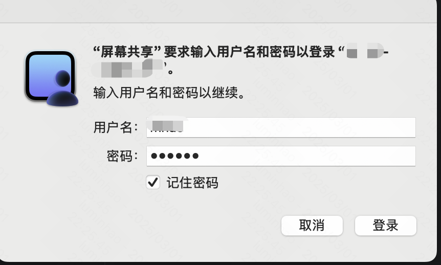 Mac 远程管理,屏幕共享输入用户名和密码后确定,对话框一直抖动,无法登陆