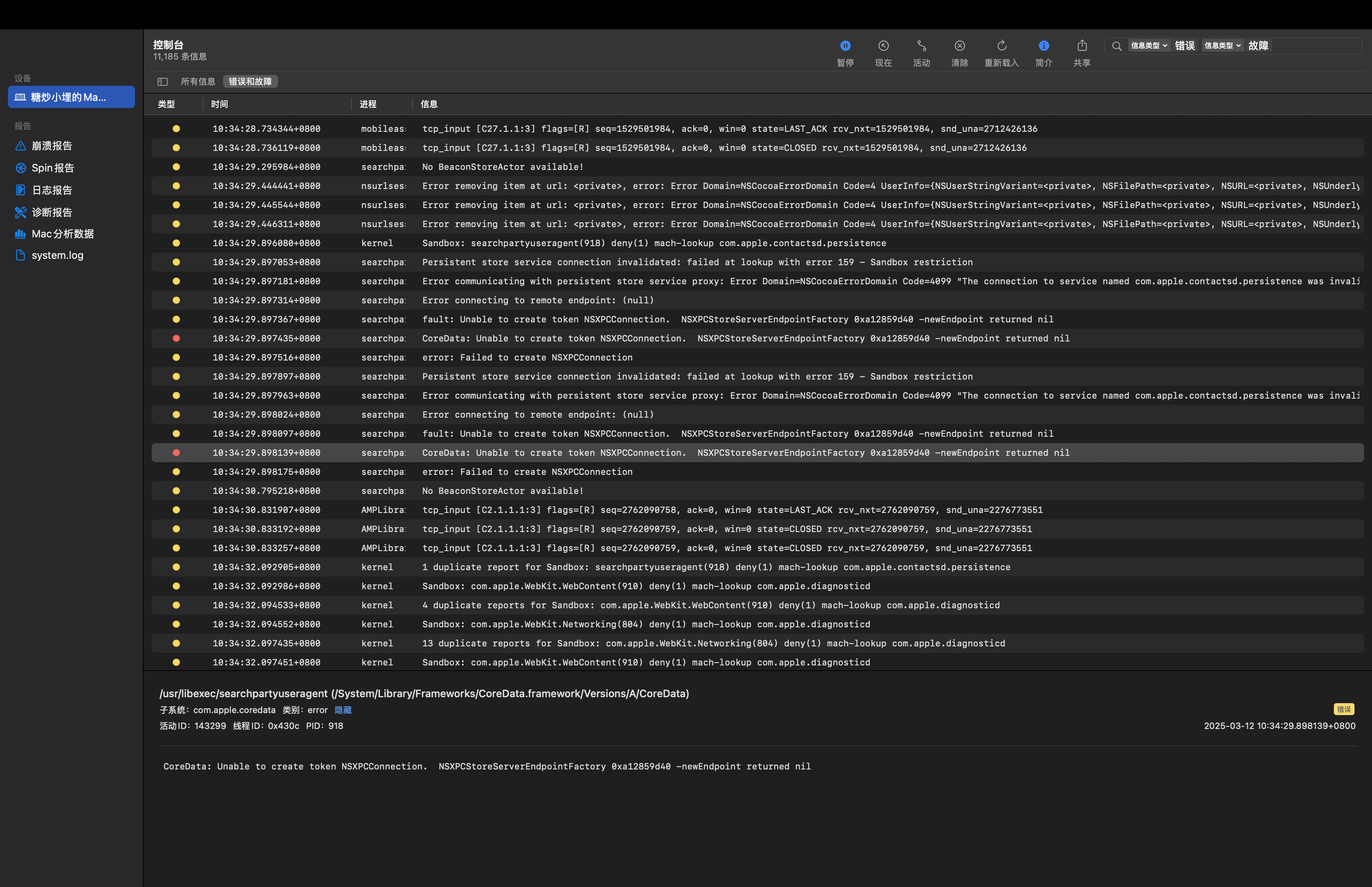 macbookpro在控制台扫描设备故障和错误 扫出来好多错误和故障