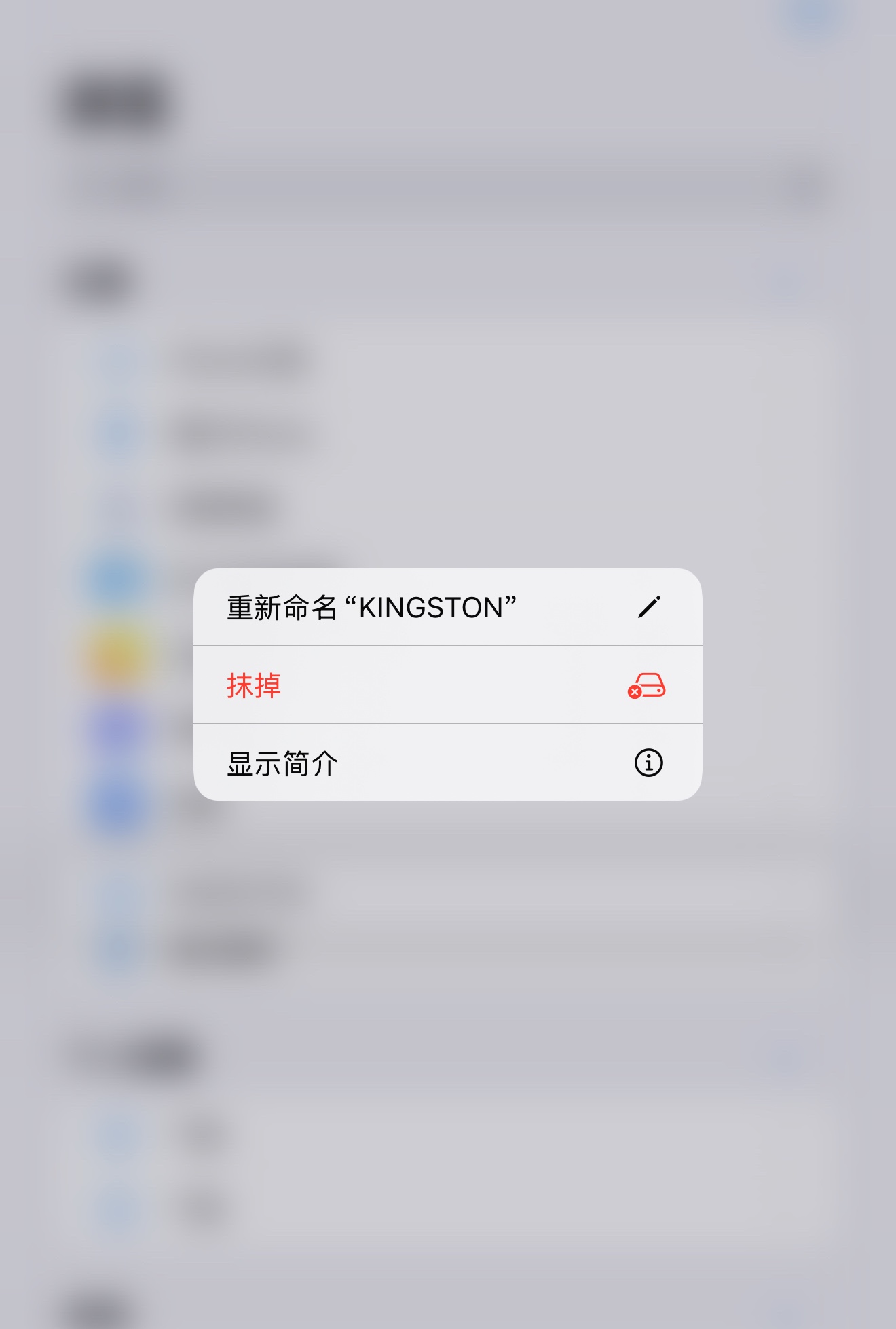 文件app浏览U盘名字右侧没有弹出按钮,然后长按U盘名字有人没有弹出按钮