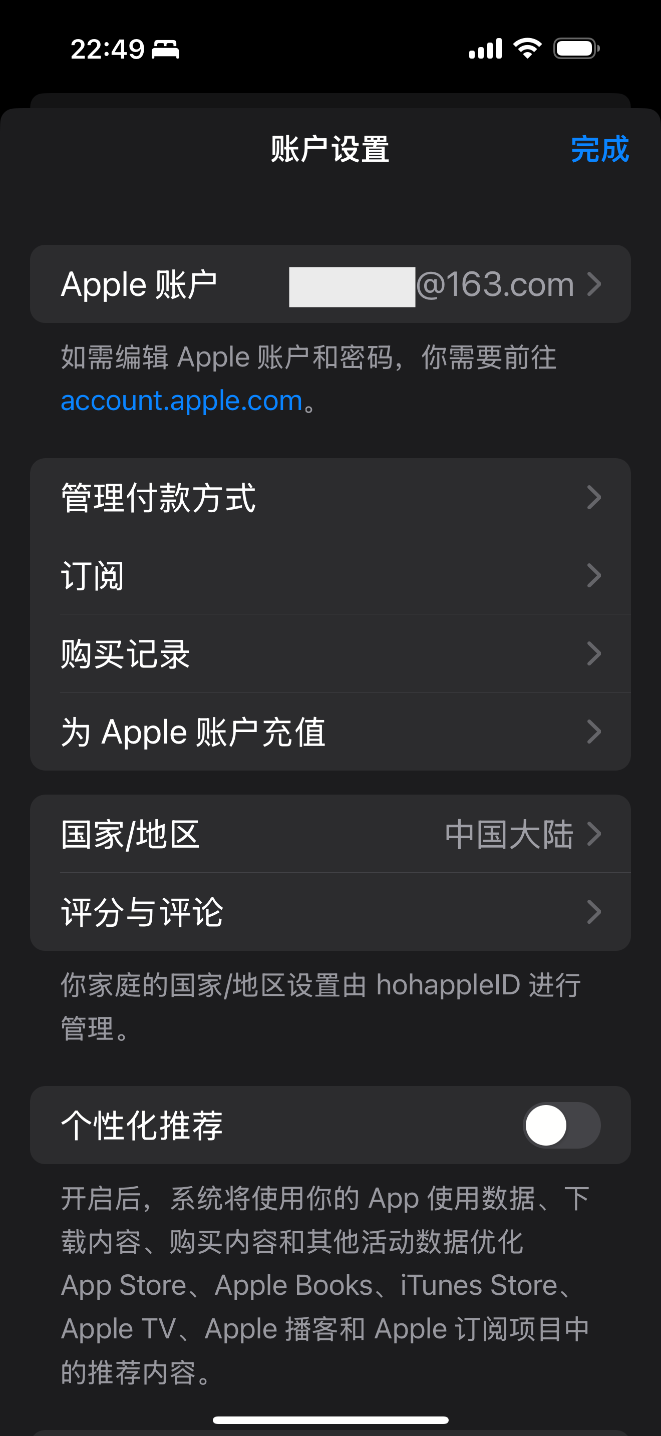 iPhone 通过App Store访问 Apple 账户提示当前家庭账户由hohapple id管理,但是并没有开启家庭