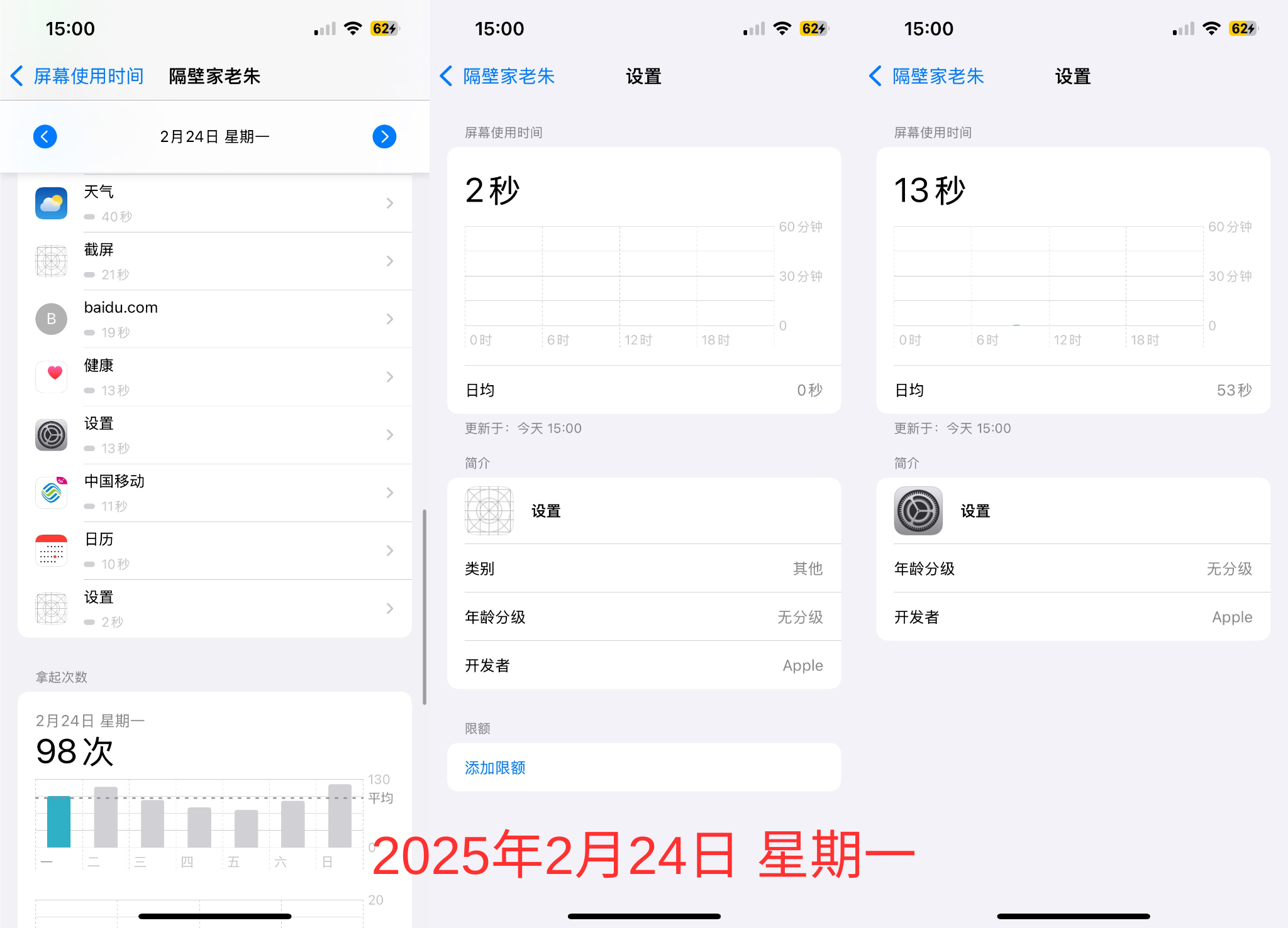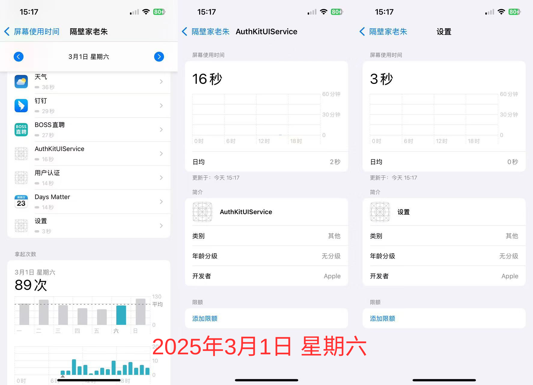 - 发现问题界面/ 路径:设置 --- 屏幕使用时间 --- 查看所有 App 与网站活动 --- 每天,找到这里看到“最常使用”显示当天自己在本机上浏览点击使用停留等操作对应的细分 App 与网站内容,显示并且可以查询的时间范围约等于最近一个月;