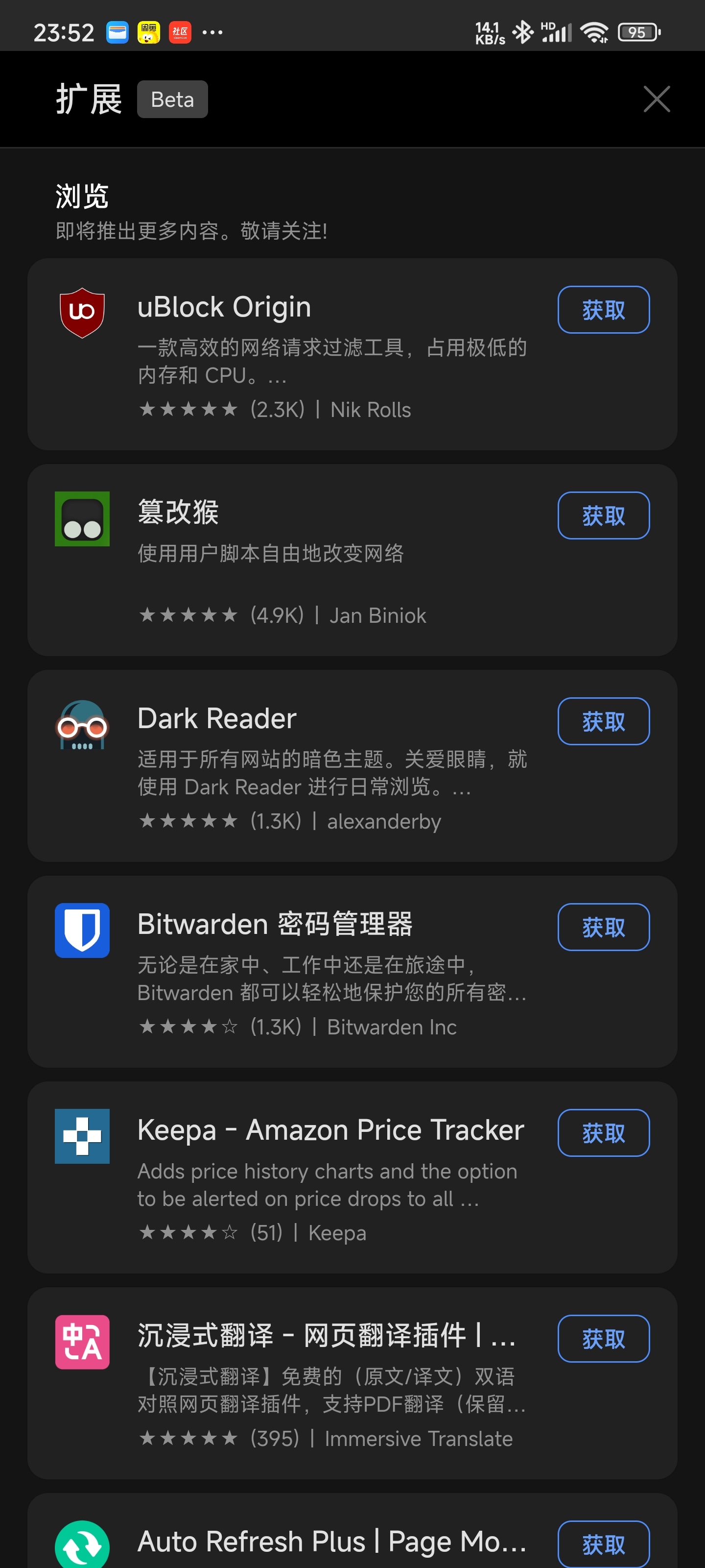 Microsoft Edge的扩展功能目前仅在桌面端(含Windows、macOS)和Android端提供,且Android端Edge扩展尚在测试中,你可以等待后续更新,或使用提供此功能的其他浏览器。