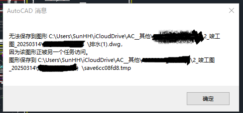 pc端,cad文件在iCloud中,在编辑cad文件后,当保存cad文件时,会生成一个临时文件(见截图),当保存操作结束后,临时文件会消失,但是现在出现一个问题,iCloud会占用临时文件,导致保存时提示文件被占用,无法保存,只有通过任务管理器将iCloud运行程序停止后,才能保存。