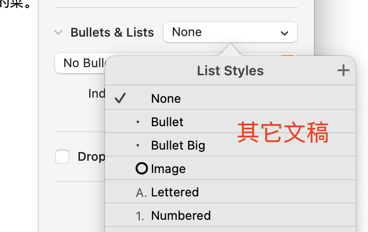 比如我在A文稿,创建了一个新的列表格式(如图1)。但是此格式不会被其它BCD文稿应用(如图2),我得将这个格式复制到其它文稿,再添加格式,才能应用上。我的问题是,我要怎么做能将这个列表格式,不用手动复制,就能自动更新在所有其它以及将要创建的文稿上?