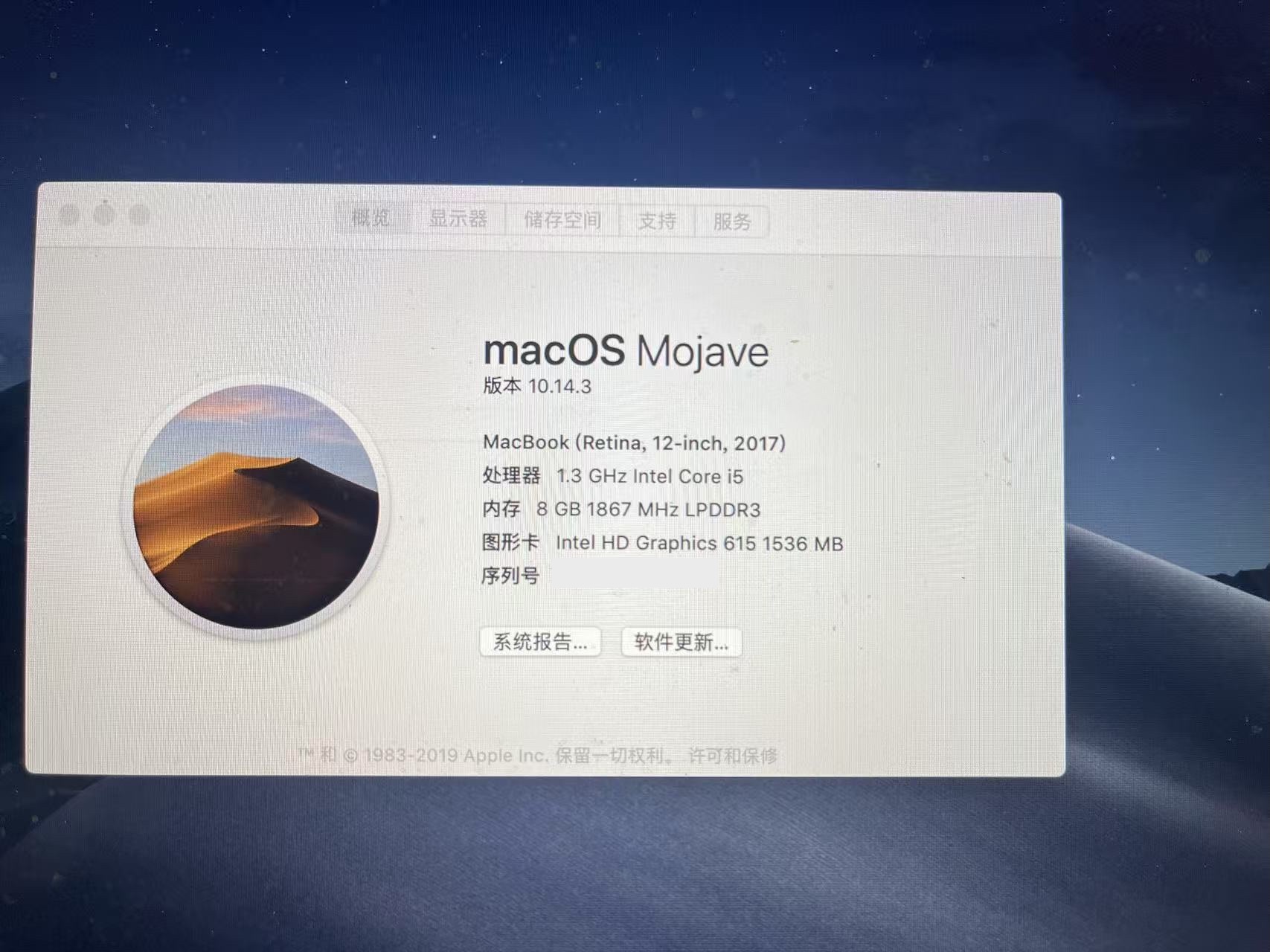 macbook电脑,系统未macOS Mojave,版本信息10.14.3