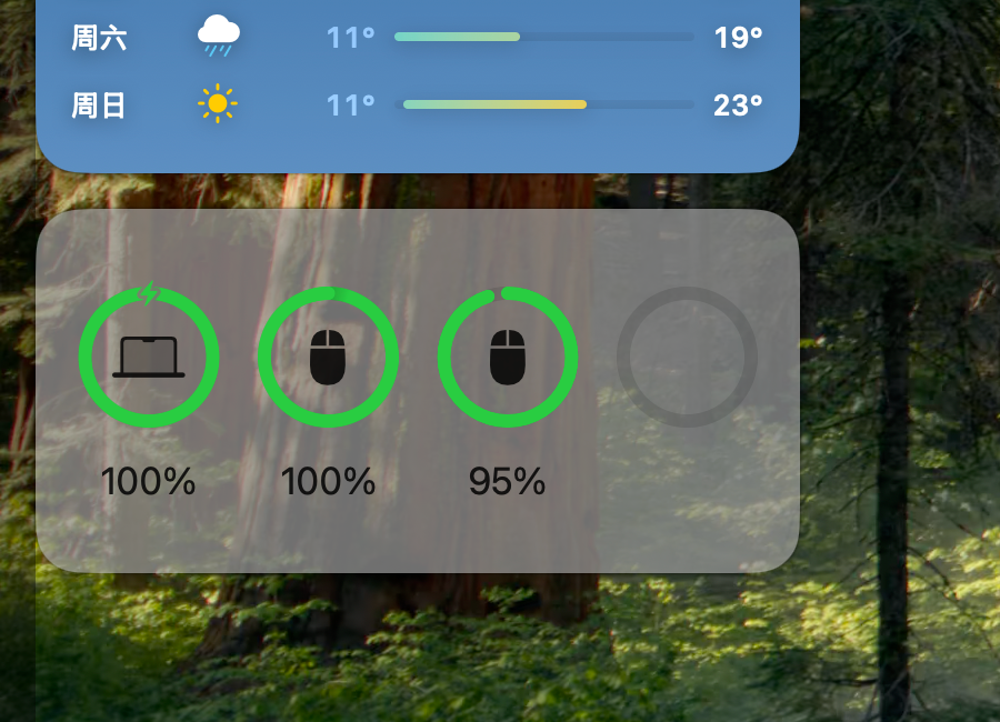 在蓝牙设置项正确识别了蓝牙键盘和鼠标,并显示电量,但是在桌面电源小组件,蓝牙键盘和鼠标都显示成鼠标,如图。