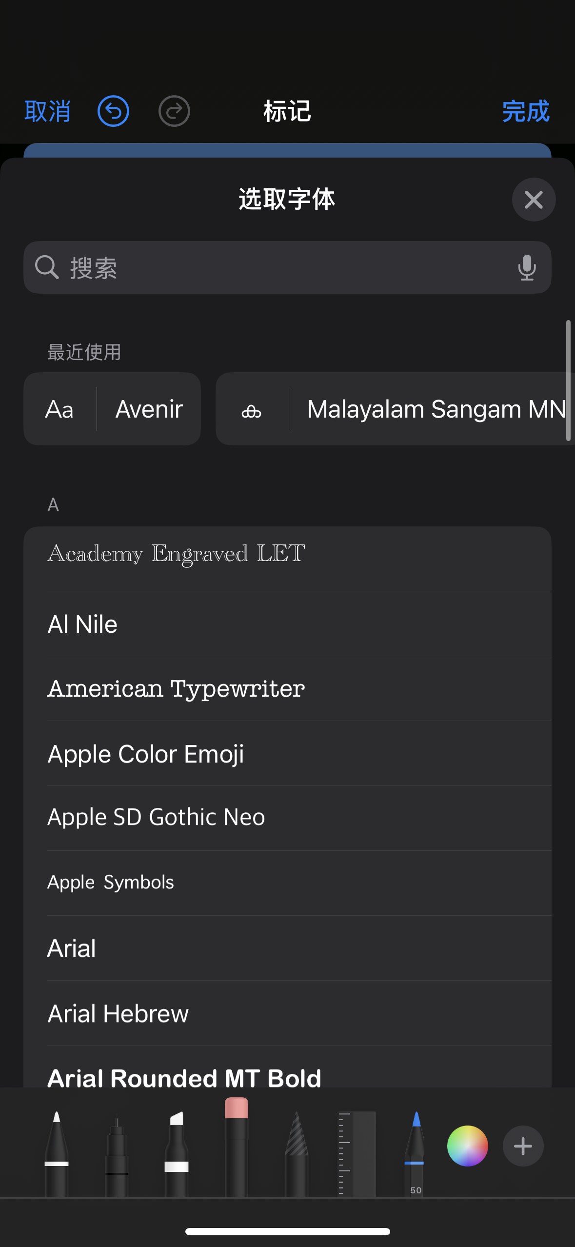 iPhone中相册图片编辑,添加文本时可选取的字体没有系统默认字体