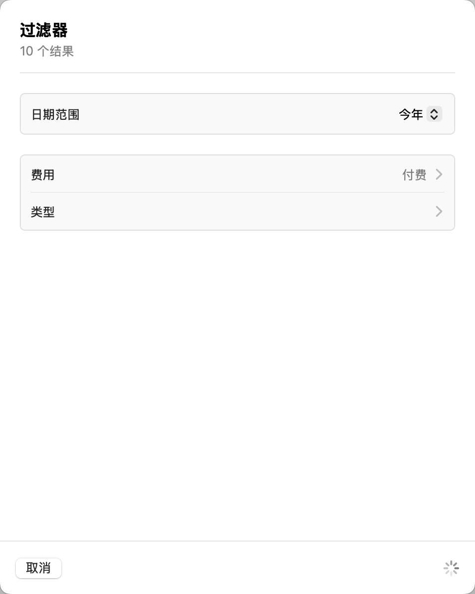 App Store内查看购买记录,默认展示最近90天内付费内容,进行筛选今年或者之前的记录,应用后会一直处于加载中。。。长时间等待 没有后续,有遇到过这种情况吗
