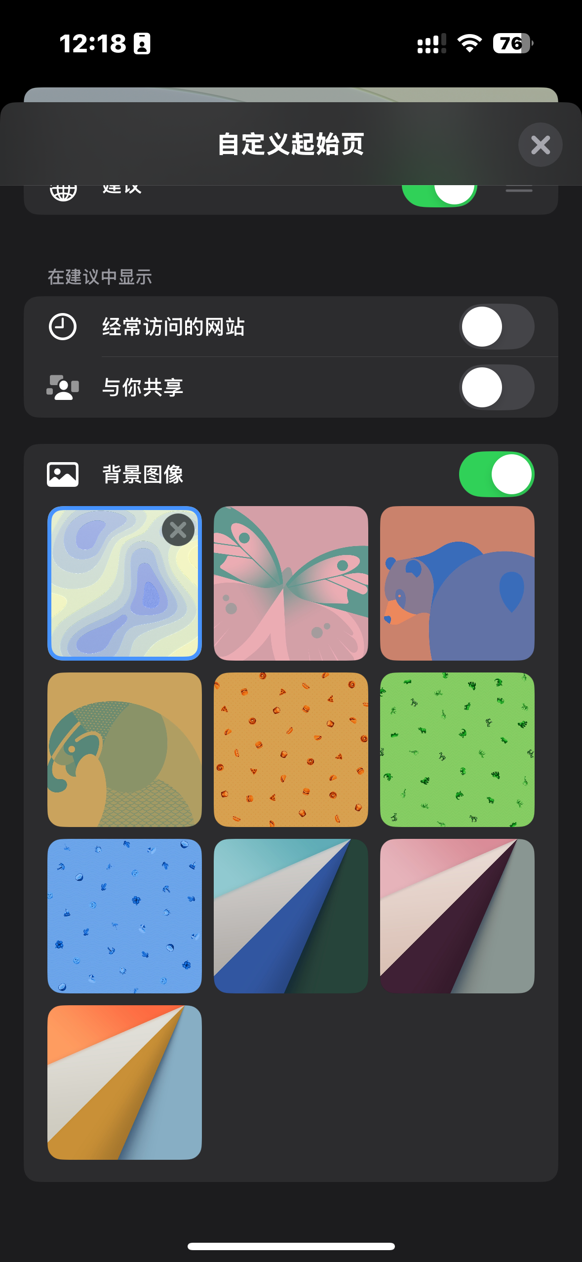 以下用户的用户个人资料: Quinn0823 Quinn0823 用户级别: 级别 2 387 积分 2025年4月24日 下午7:41 回应 Tom杰 你可能在 Safari 新标签也配置中关闭了背景,打开就好了。 回复 链接