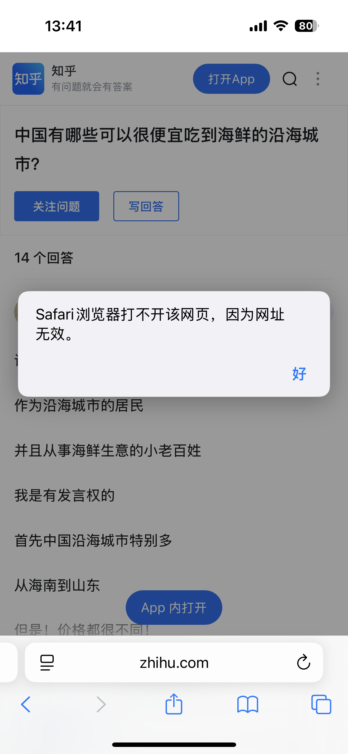 换成必应搜索后,打开知乎网站也是提示网址无效,却可以正常打开