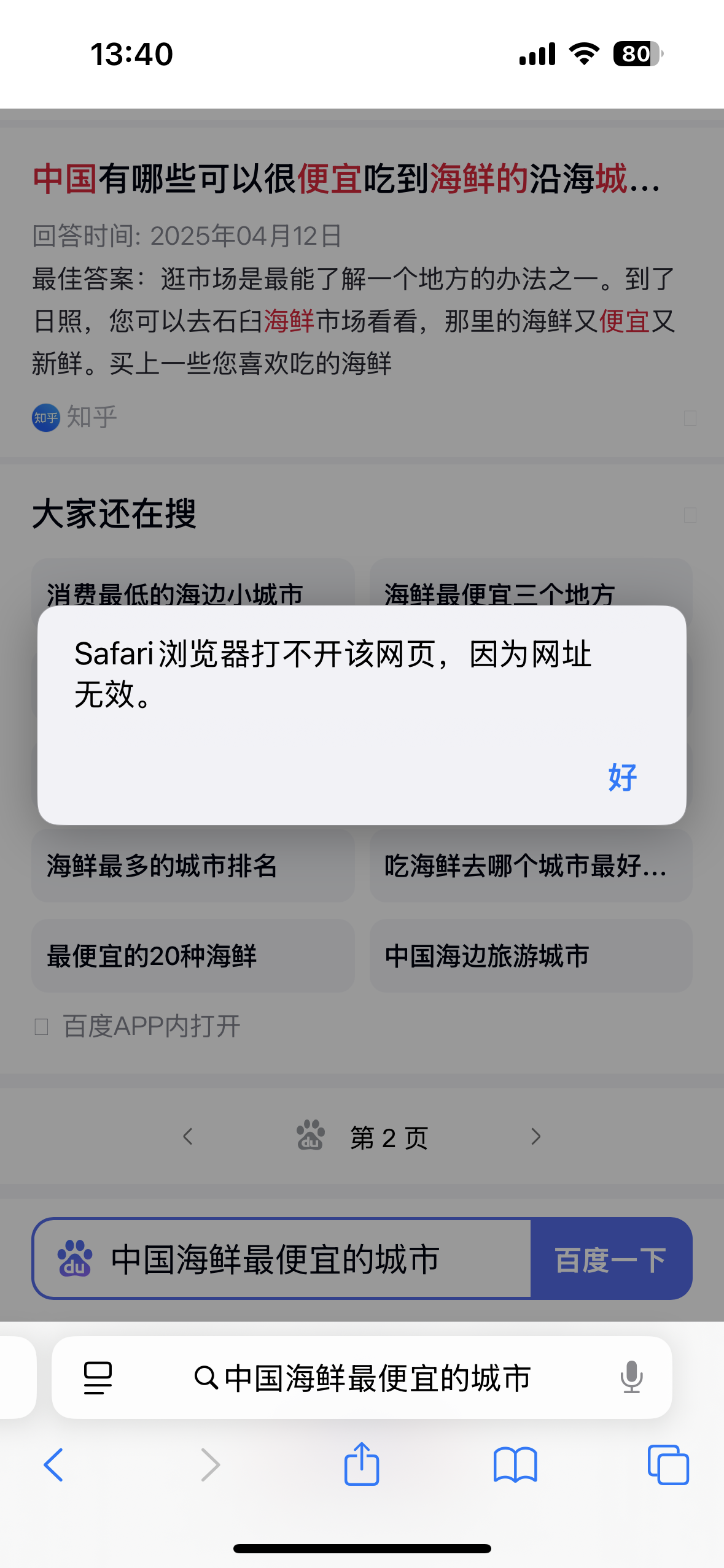 iPhone 自带浏览器提示网址无效,然而网址可以正常打开 。就看百度相关页面屏幕闪烁。