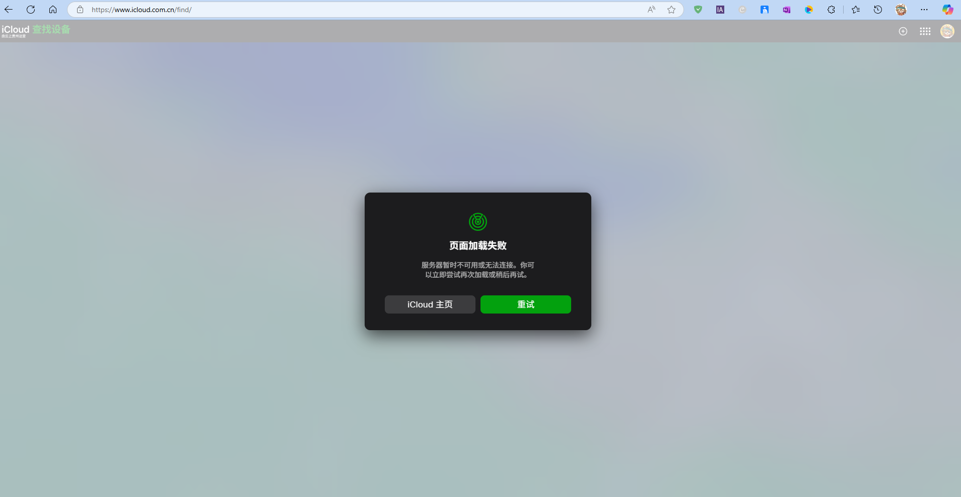 使用edge浏览器,登陆的cn版iCloud,无法进入查找。
