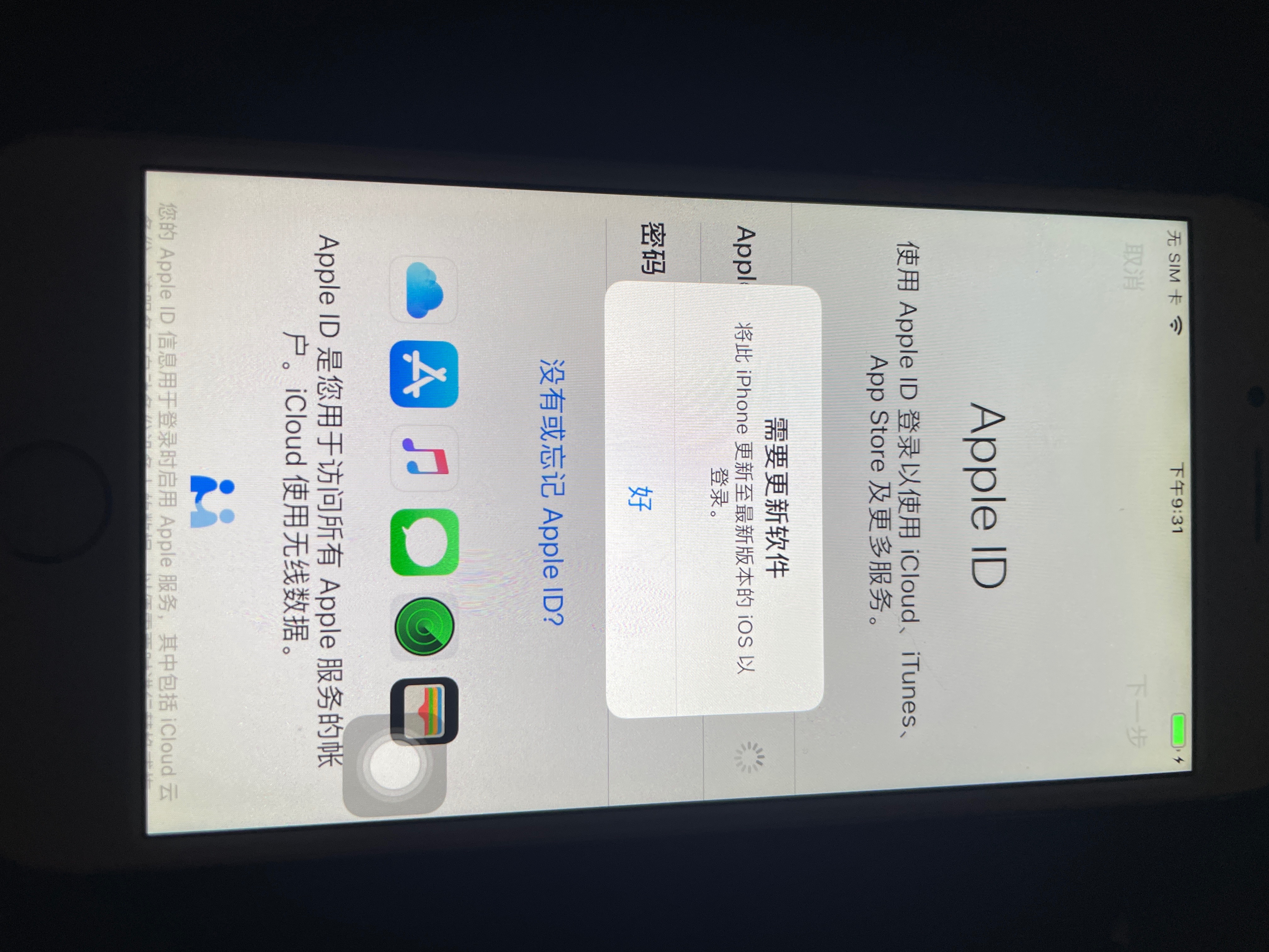 问题:登录我的Apple账户时弹窗“需要更新软件”“将此iPhone更新至最新版本的iOS以登录”