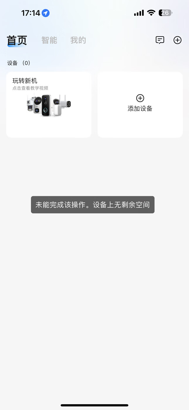 iPhone App 进行网络请求的时候出错,报错信息为:未能完成该操作。设备上无剩余空间