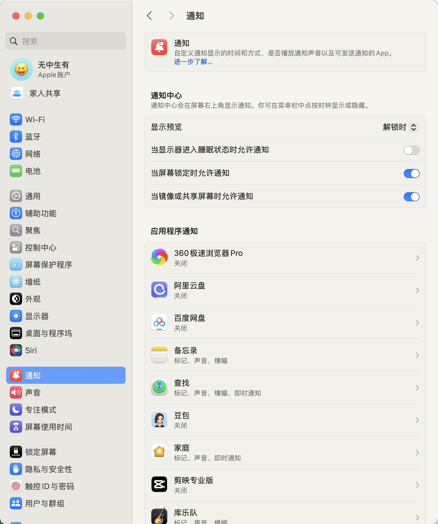 macbook air里面通知一栏中没有 iPhone的通知选项