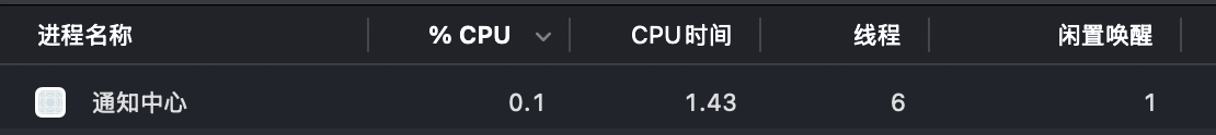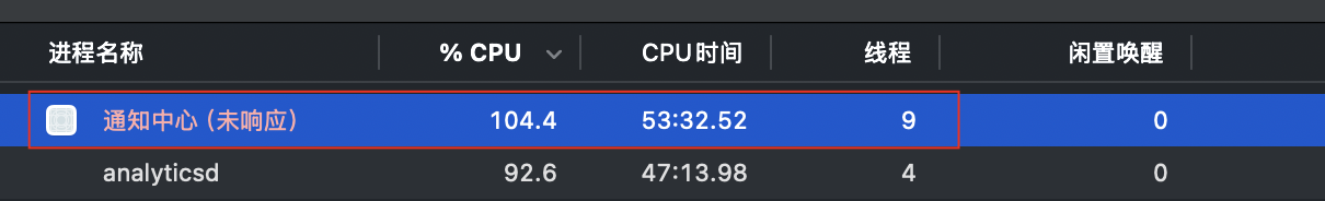 - 打开活动监视器,发现「通知中心(未响应)」,且 CPU 使用率超过 100,如图
