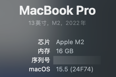 - 现在我系统已经更新到 15.5,依旧有这个问题,下面是本机信息