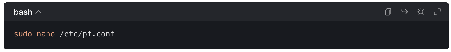 sudo pfctl -ef /etc/pf.conf