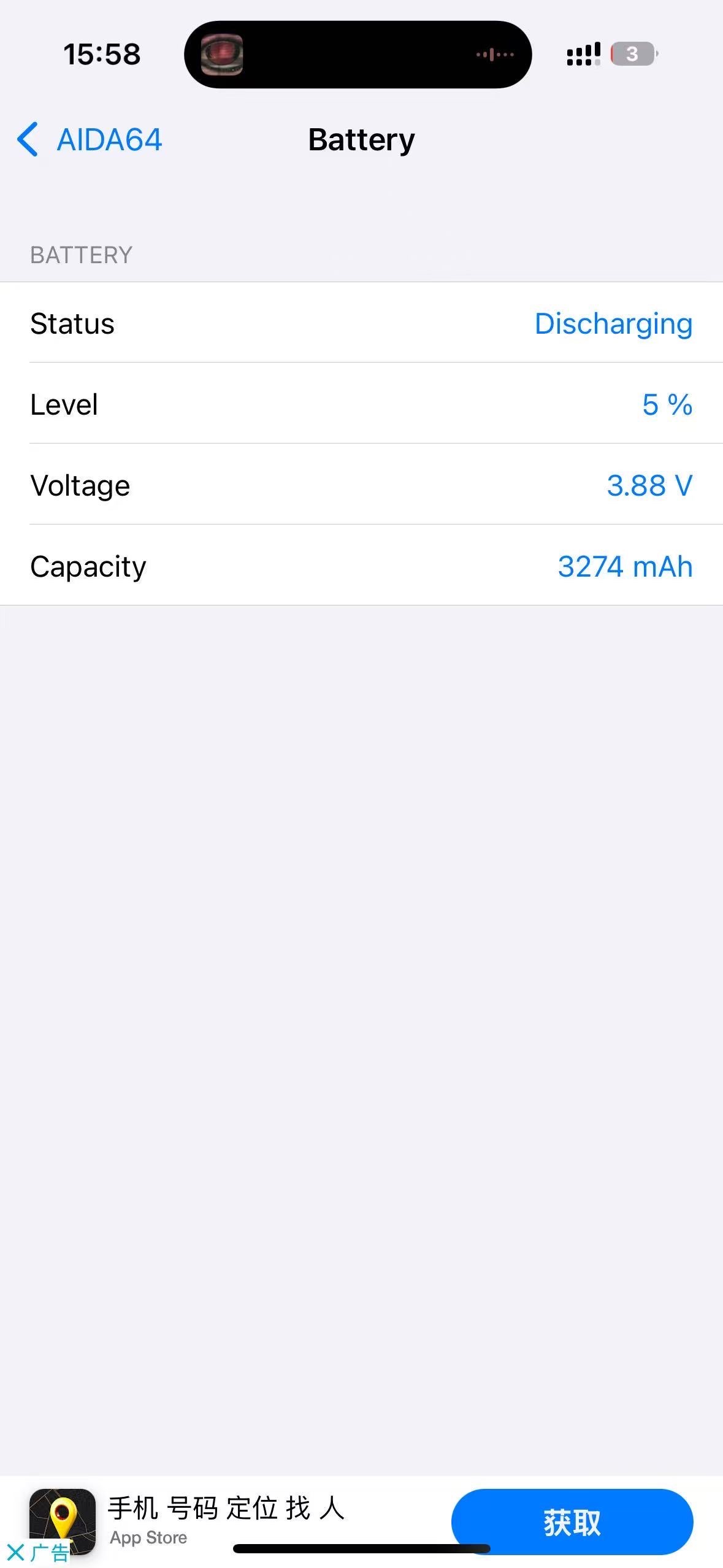 于4月在当地的授权经销商处购买的iPhone16,用了两个月,发现电池特别不耐用,升级ios18,5后一晚待机甚至能耗20格电,于是今天下载了aida64,发现电池容量只有3274mAh,这与官网标定的3561mAh有较大出入,请问此种情况是否正常,下面附上图片