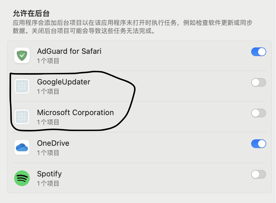 Mac 如何删除「允许在后台」下面的app