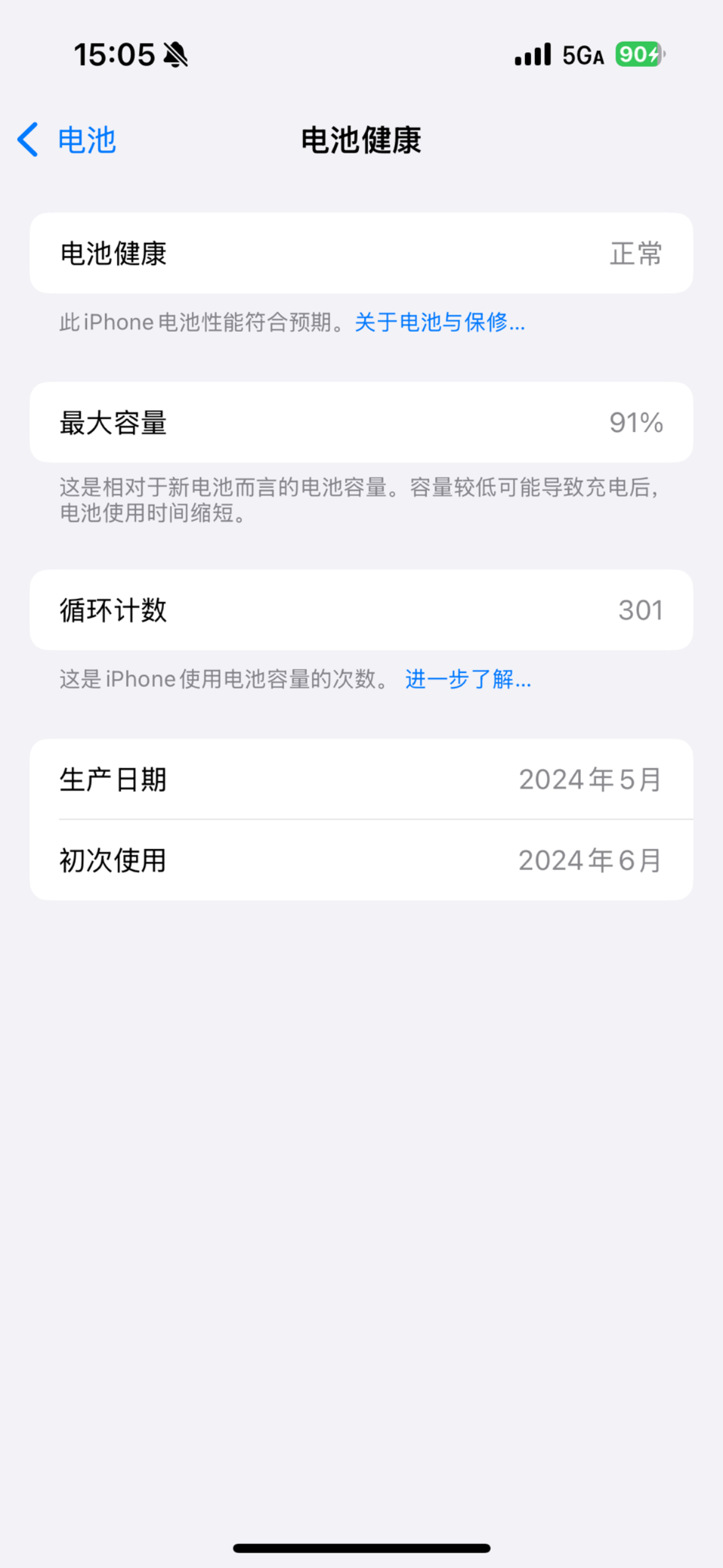 iPhone 15 Pro 两周不到循环304还剩余90%